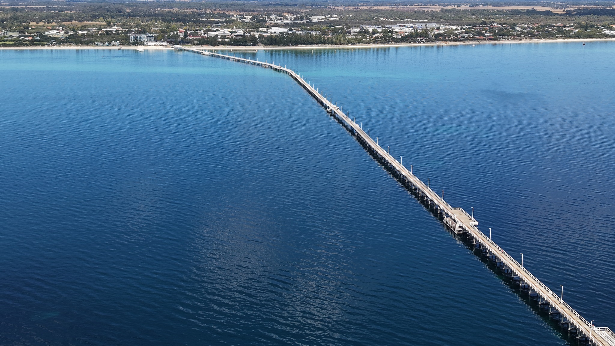 Busselton Jetty ist ein Steg in Busselton, Westaustralien. Mit einer Länge von 1.841 Metern ist es der längste Holzsteg der südlichen Hemisphäre. Am Ende befindet sich noch ein Unterwasser Observatorium.