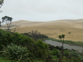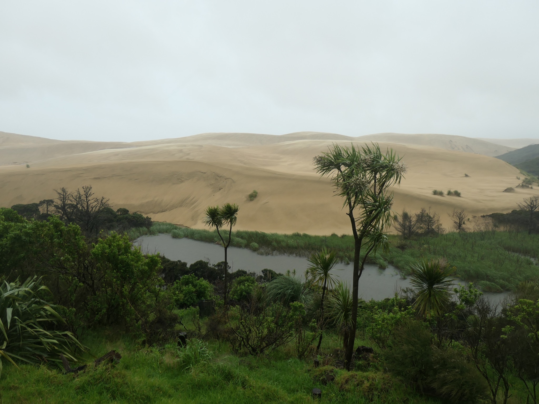 Bei der Rückfahrt schauen wir uns auch noch die "Giant Sand Dunes" aus dem Auto an, weil ans Aussteigen ist bei dem Regen nicht zu denken. Und so bleibt uns auch der "Ninety Mile Beach" verborgen, dem man normalerweise entlang fahren kann.