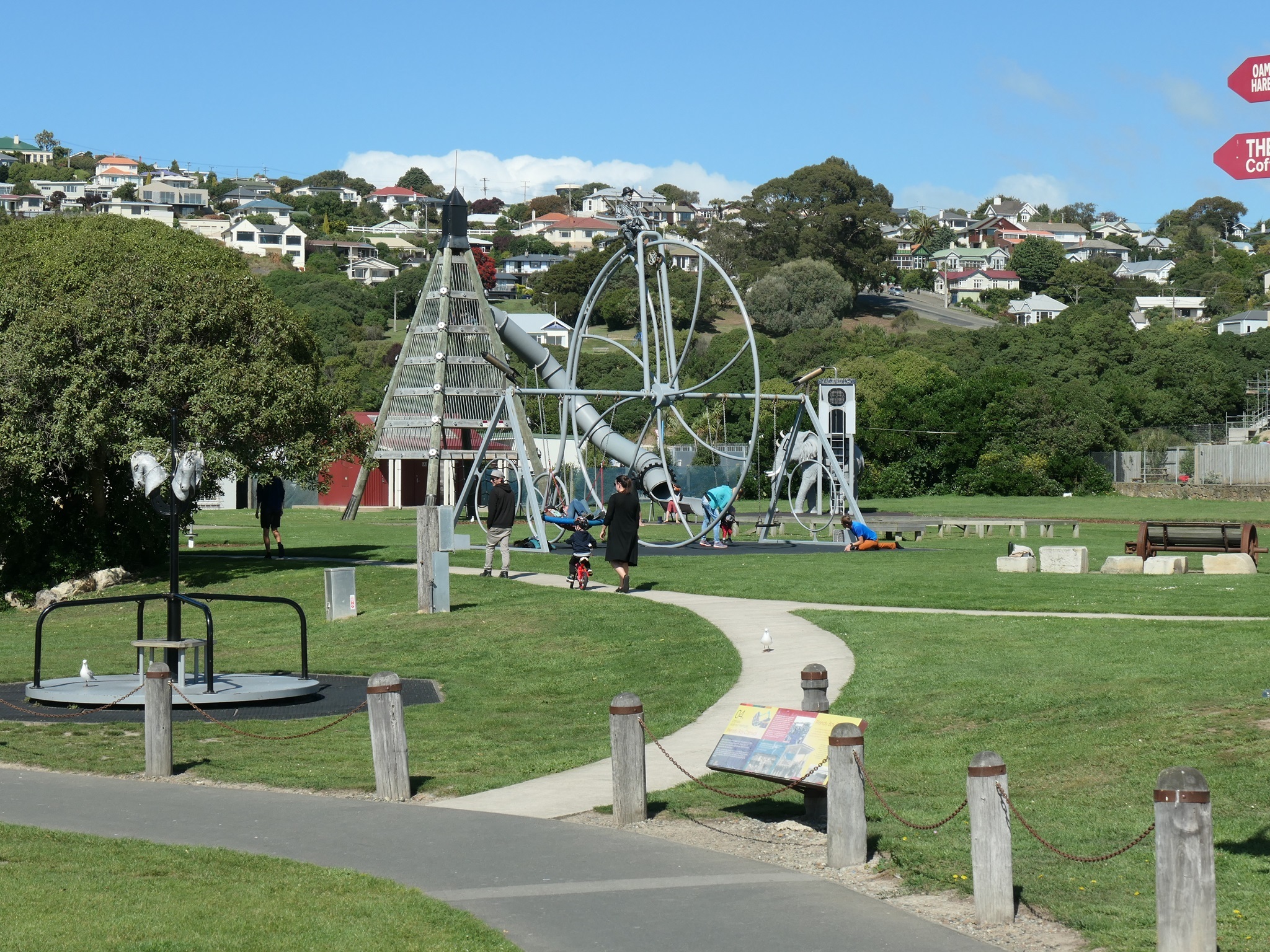 Bevor wir Richtung Dunedin aufbrechen, machen wir noch einen Morgenspaziergang in Omaru. Wir kommen genau zum Siegereinlauf des 7 Tage Backpacker Rennens zurecht. Da geht es in 7 Tagen von Mount Cook bis Omaru, etwa 200 Km Laufwandern. Alle Achtung.