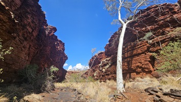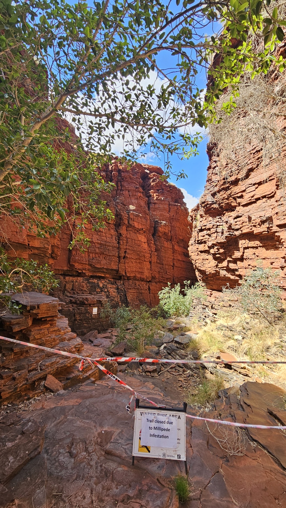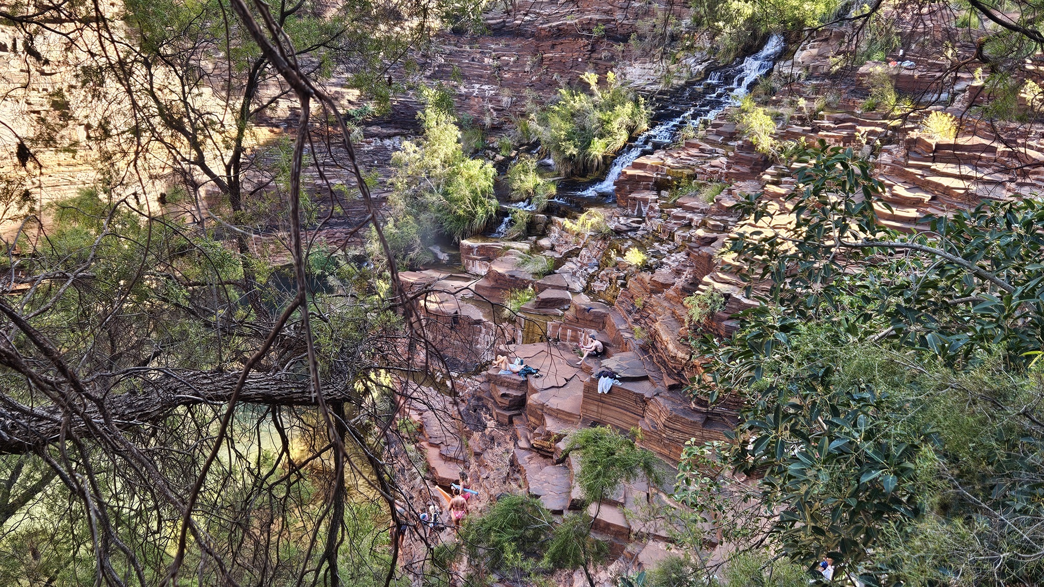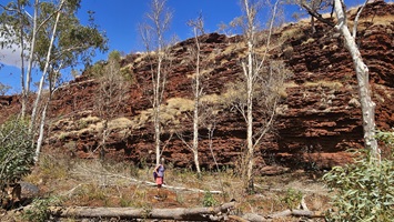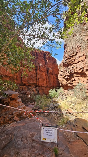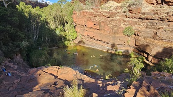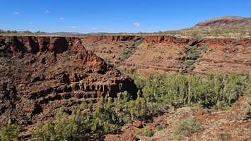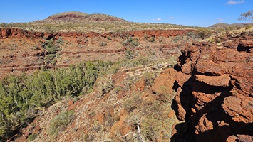 Mit 627.422 Hektar ist der Karijini-Nationalpark der zweitgrößte Nationalpark in Westaustralien (nach dem Karlamilyi-Nationalpark ) und beherbergt Felsformationen, deren Alter auf 2,5 Milliarden Jahre geschätzt wird. Der Park ist vor allem für seine zahlreichen Schluchten (Gorge) bekannt , die enge Canyons , Wasserfälle und Wasserlöcher enthalten , in denen Besucher gelegentlich in den Becken baden.