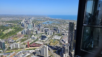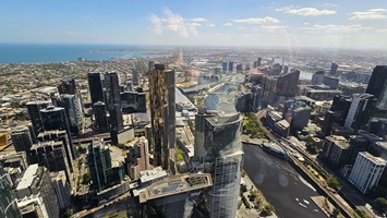 Am Nachmittag geht's auf den Melbourne Skydeck, um Melbourne von oben zu betrachten.
