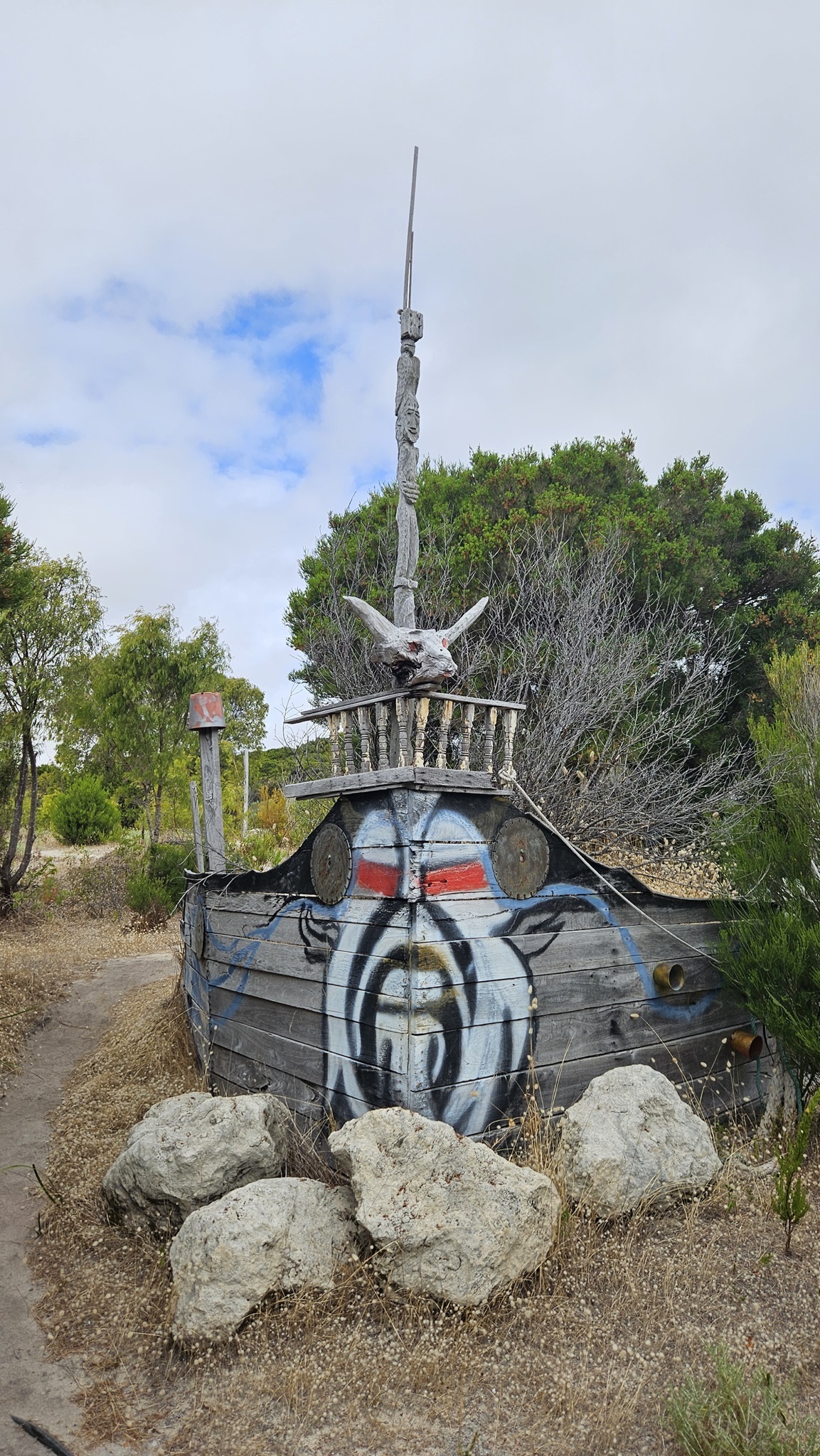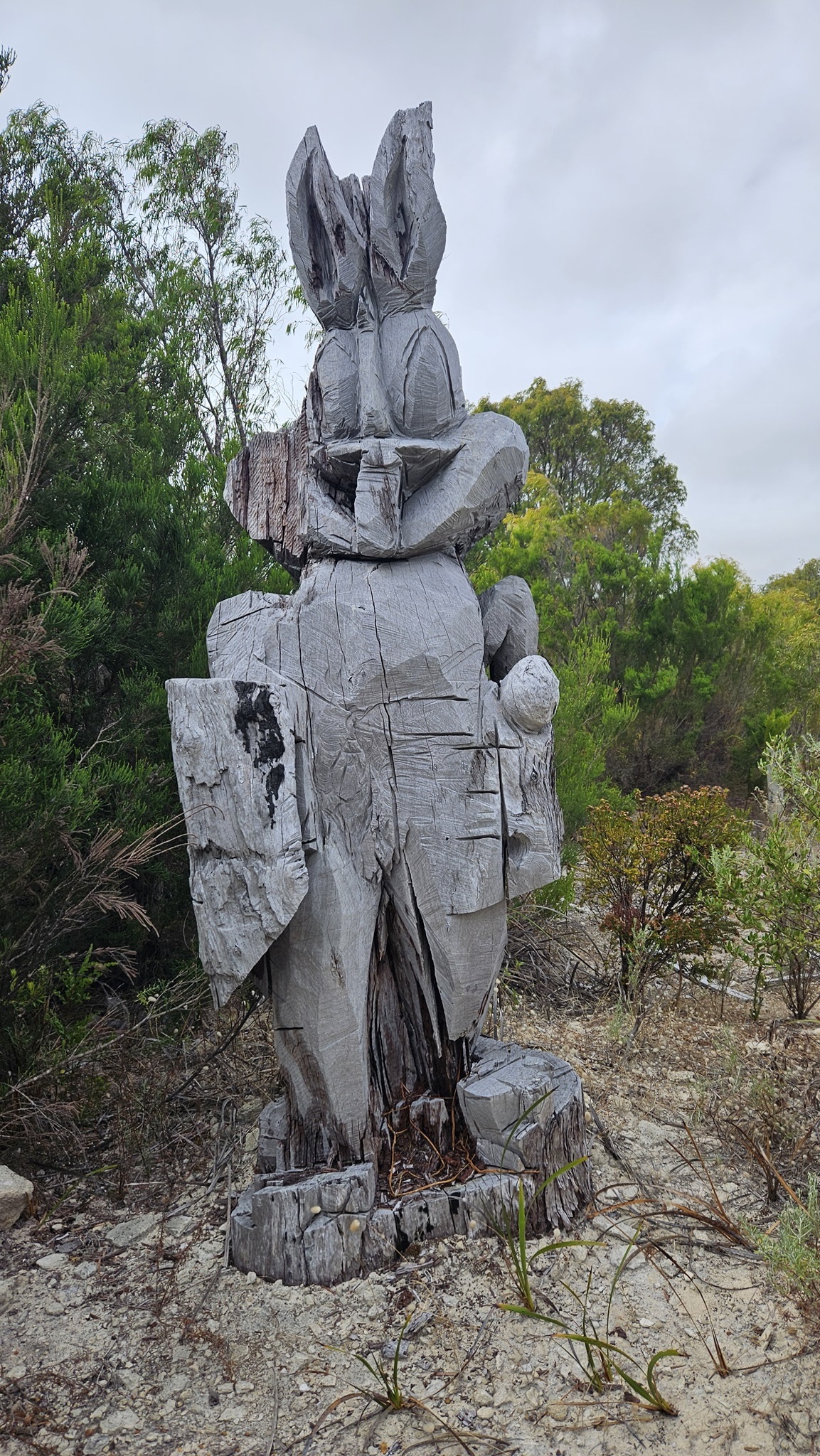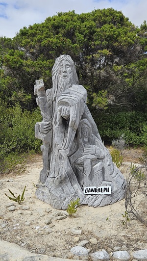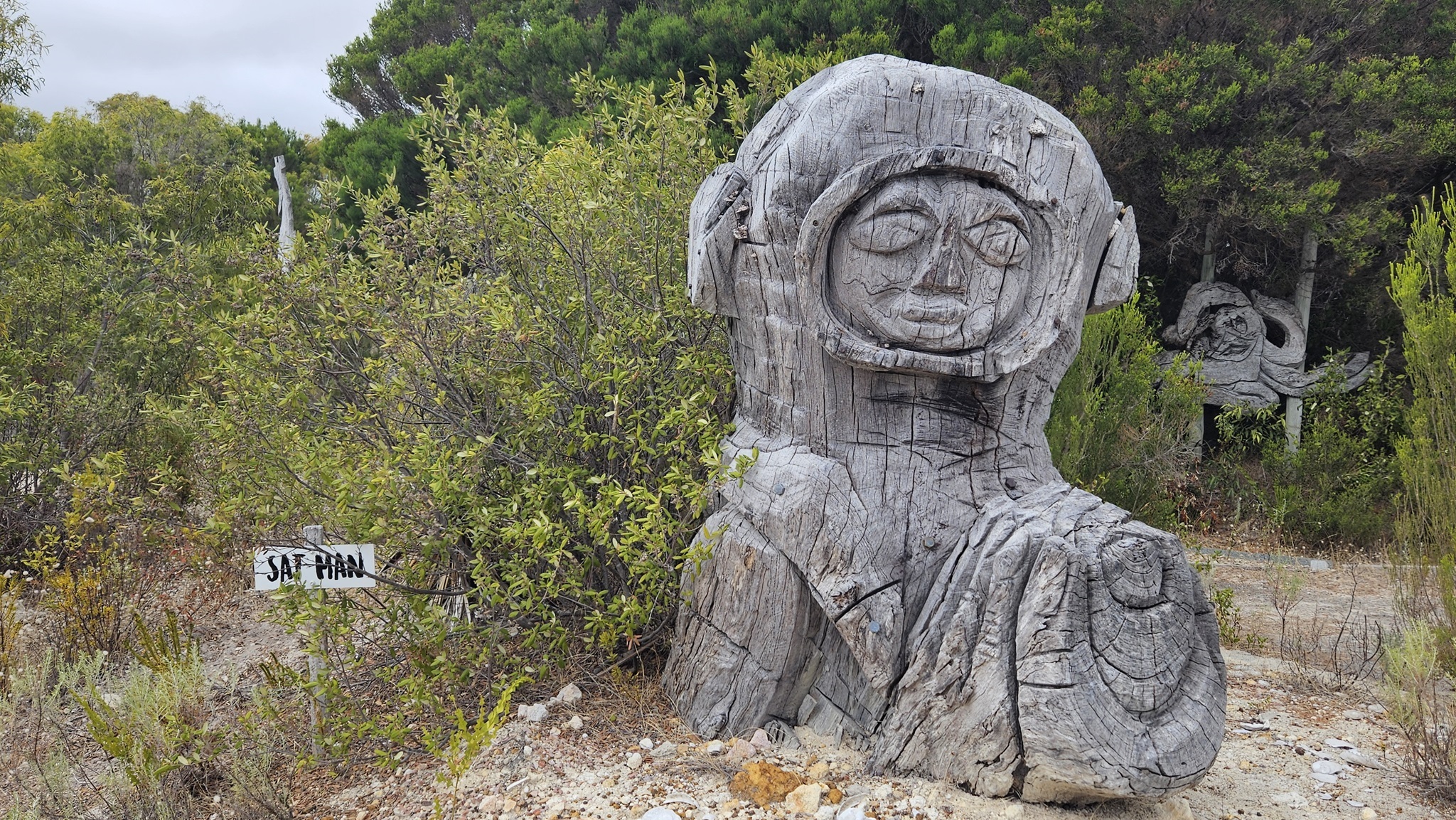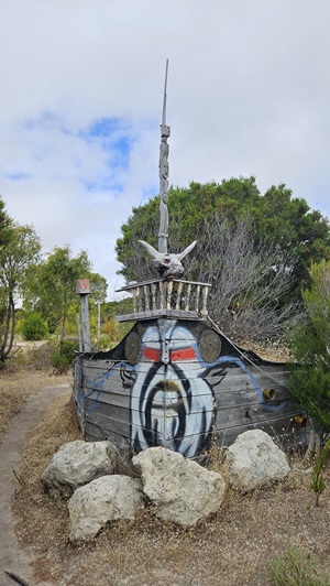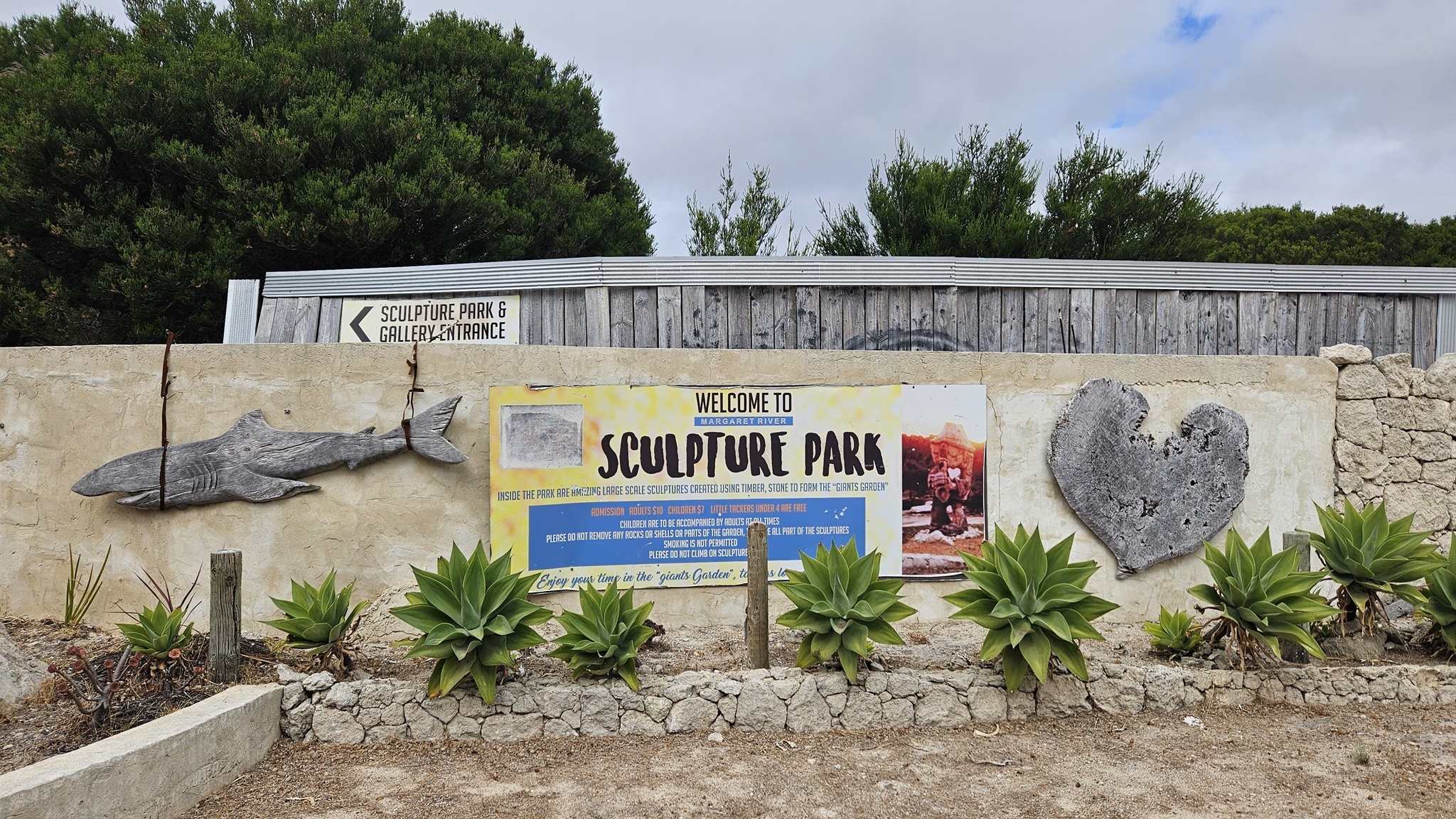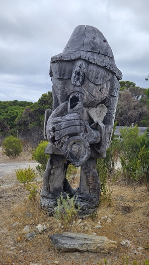 Auf den Weg nach Margaret River entdecken wir noch einen Sculpture Park, den wir natürlich auch gleich erkunden. Es ist kein Mensch da. Am Eingang liegt auf einem Tisch eine normale, nicht versperrte Tupper Ware Dose, wo wir die 10 $ Eintritt hineinlegen sollen. Da liegt schon einiges Geld drinnen, und noch immer drinnen. Die Australier sind halt ehrliche Menschen, wir auch.