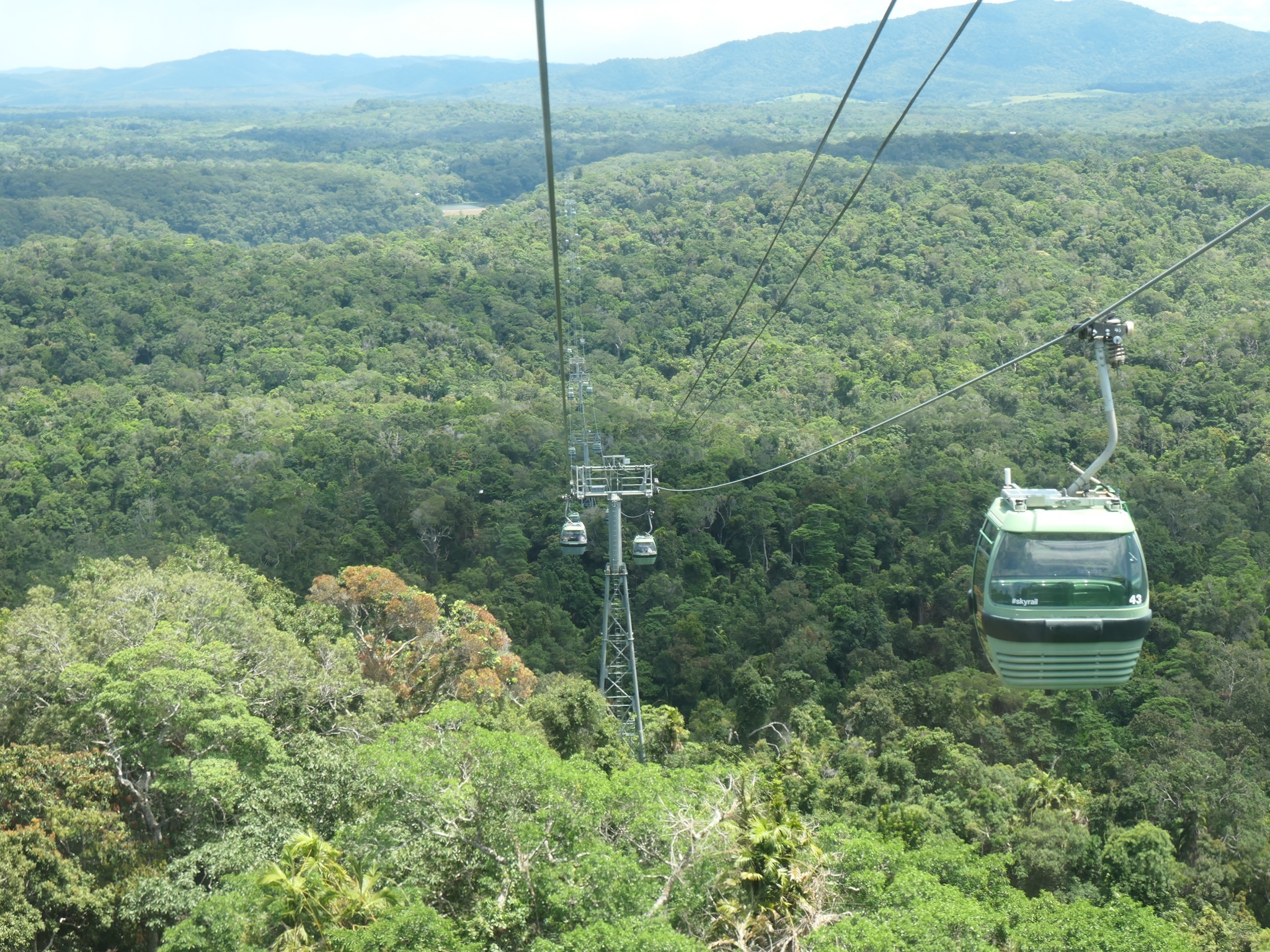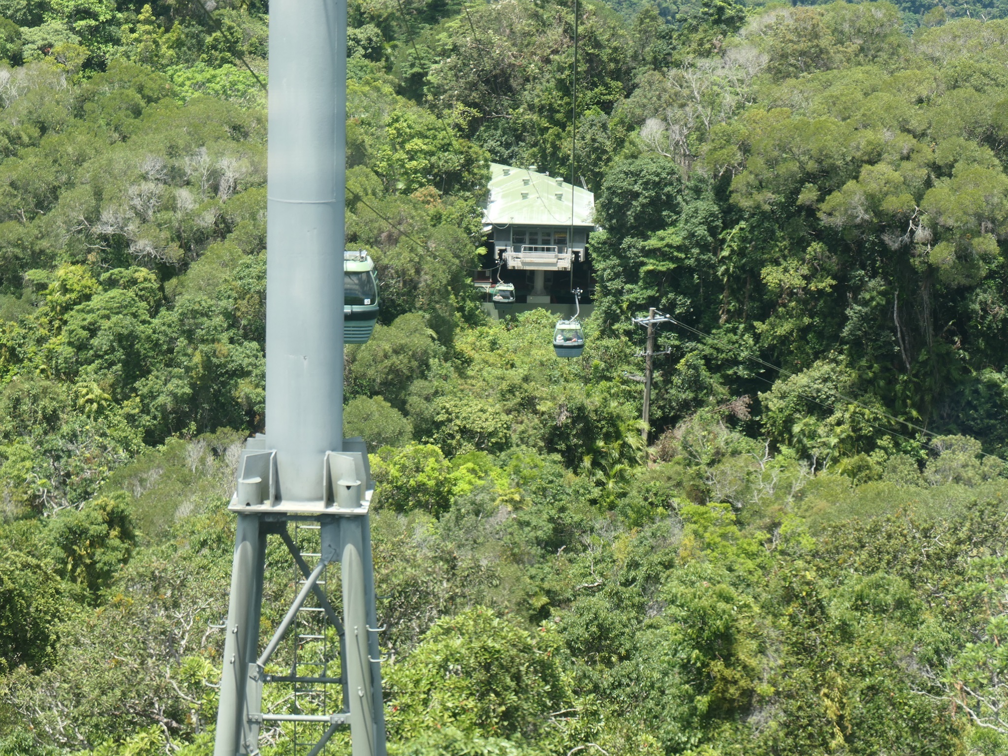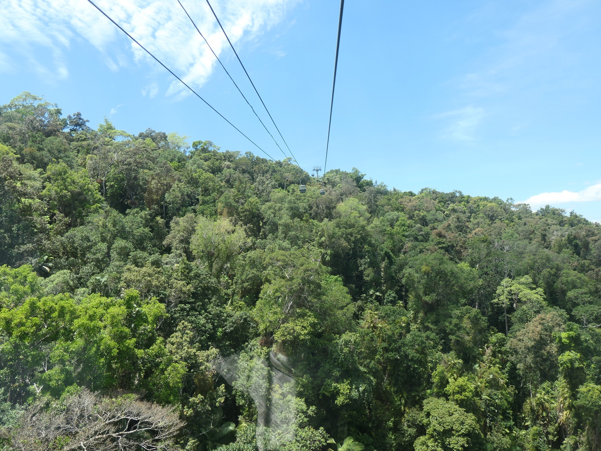 In drei Etappen geht es über 7,5 Kilometer über dem Regenwald nach Kuranda. Für den Zug, Skytrain, gab es leider keine Karten mehr, über eine Woche schon ausgebucht.