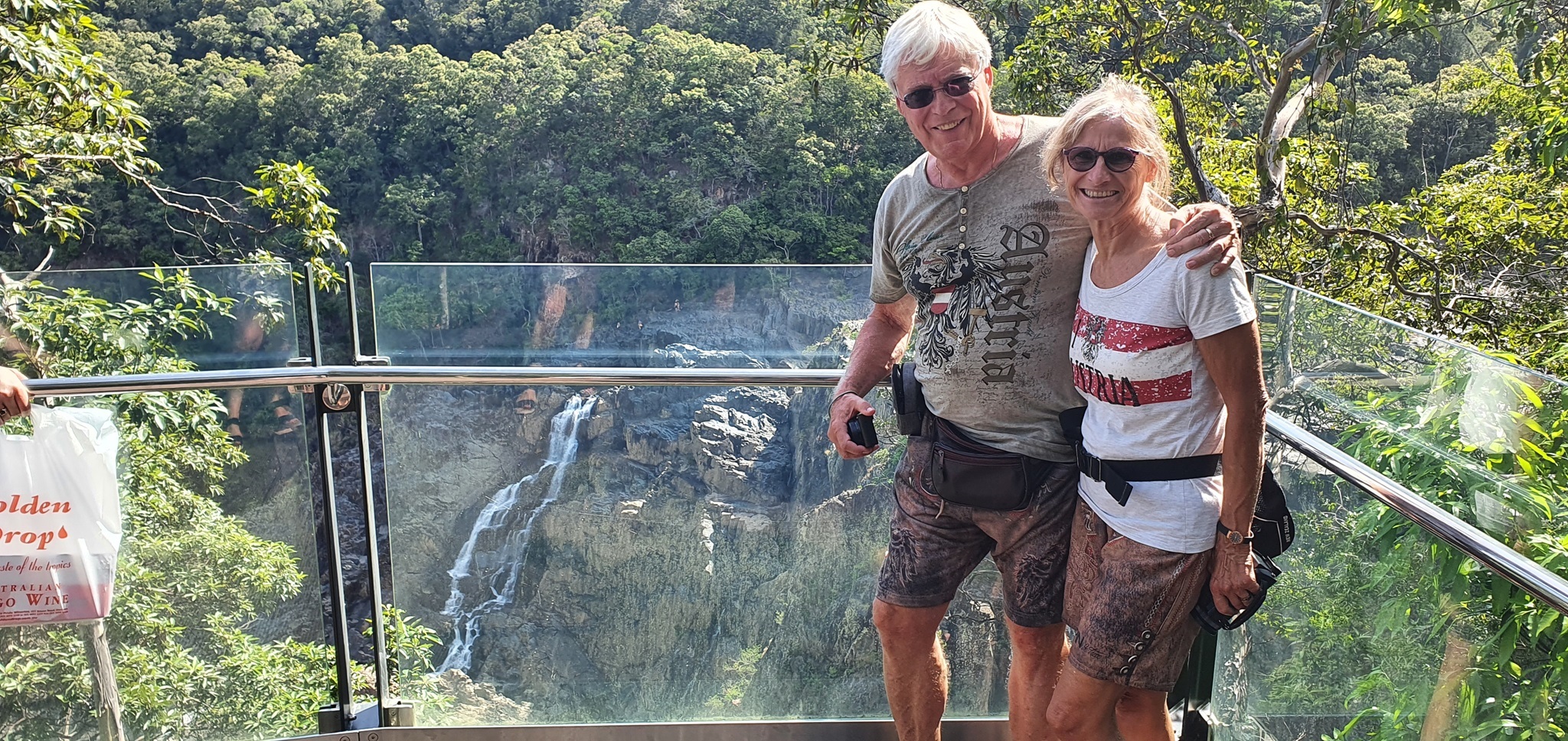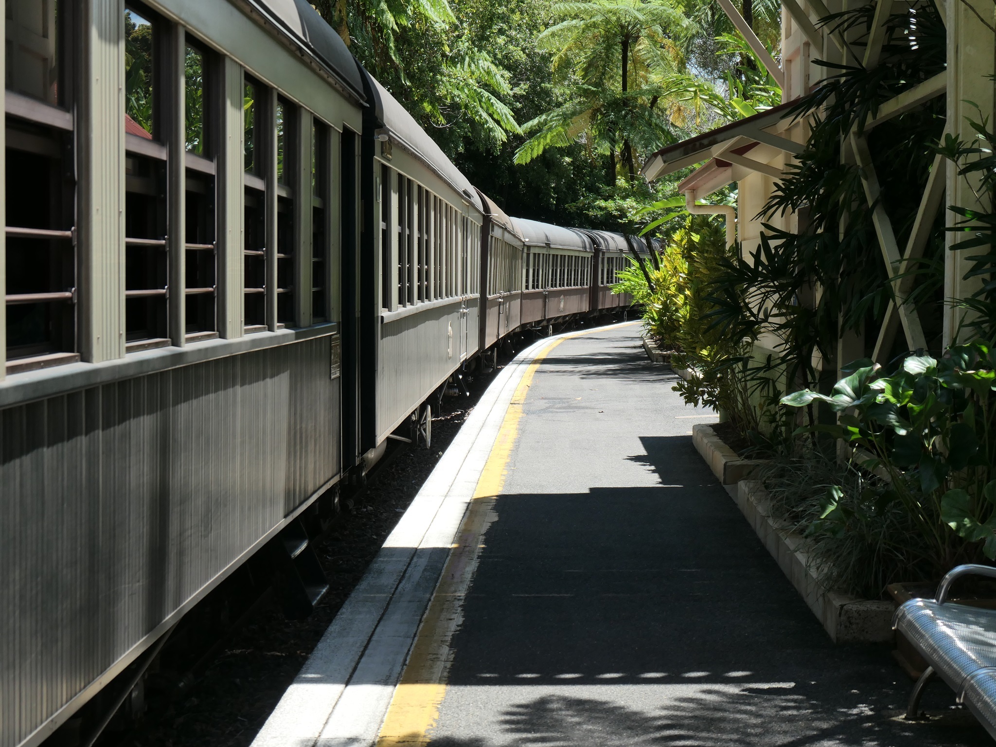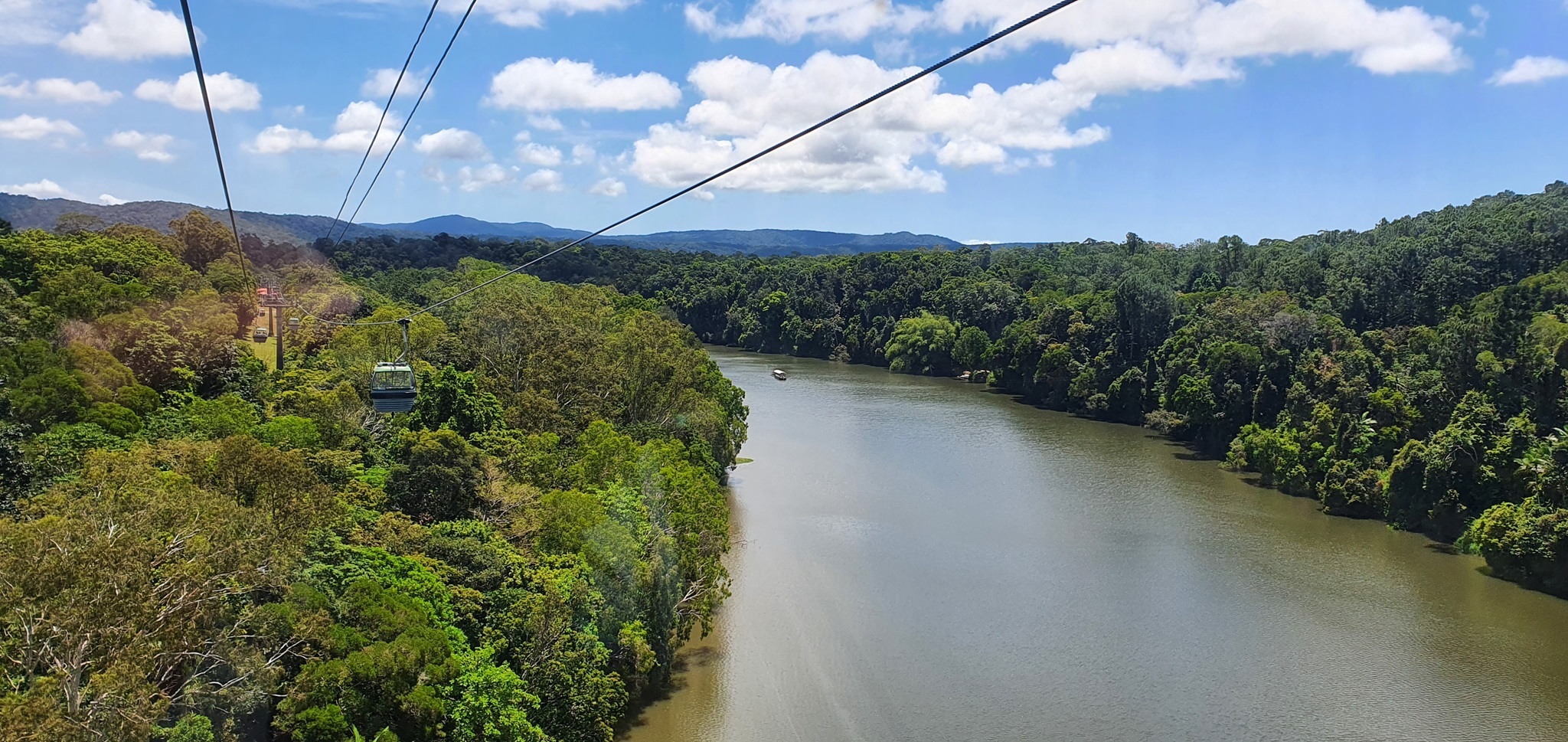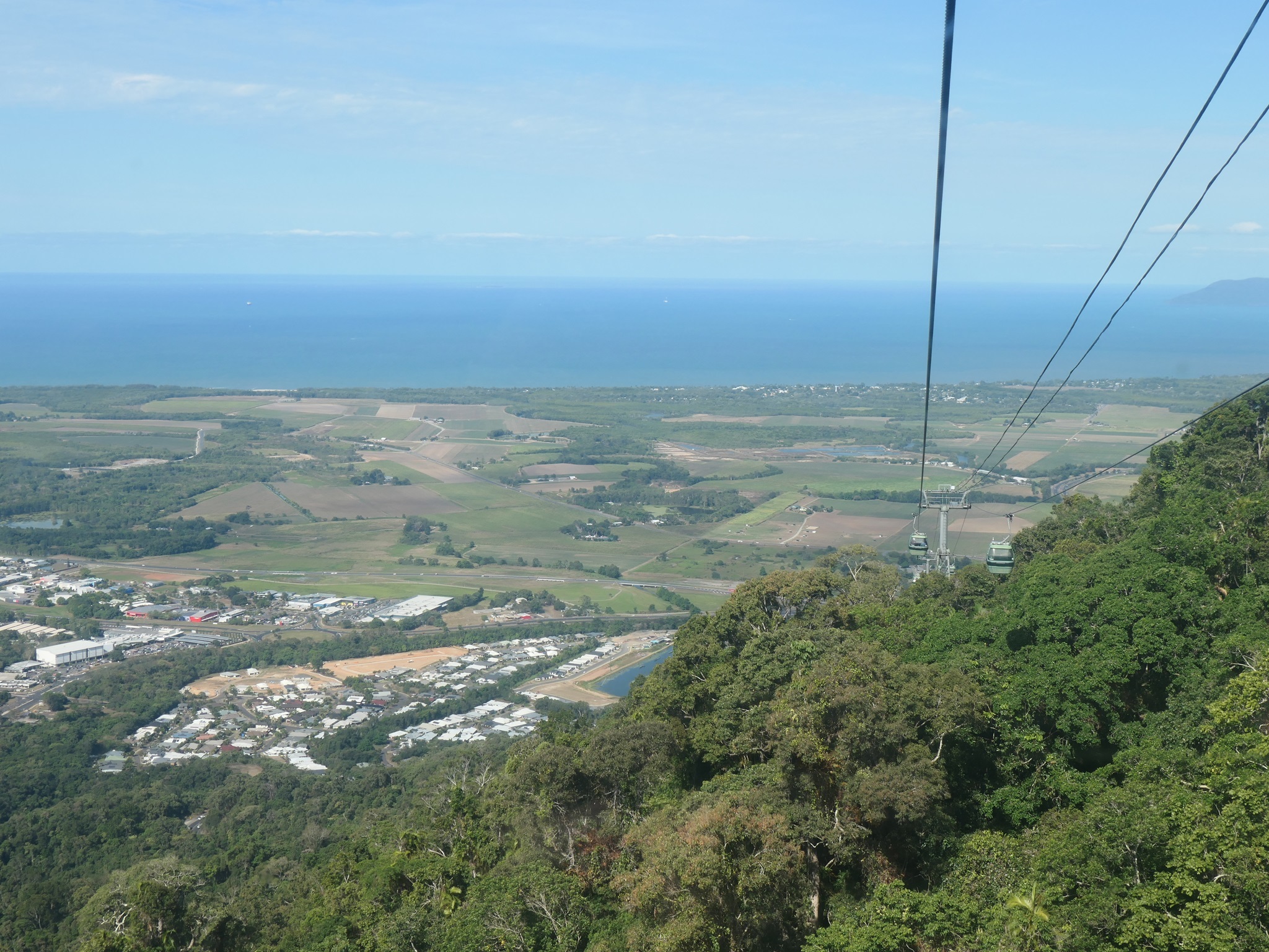 In drei Etappen geht es über 7,5 Kilometer über dem Regenwald nach Kuranda. Für den Zug, Skytrain, gab es leider keine Karten mehr, über eine Woche schon ausgebucht.