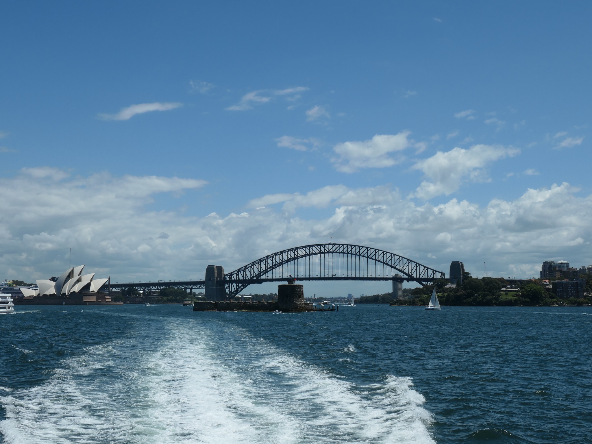 Wir fahren mit der Bahn bis ins Zentrum von Sydney. Nach einem kleinen Rundgang, der natürlich die Oper einschließt, beschließen wir, mit der Fast Ferry nach Manly zu fahren. Der bekannt schöne Strand dort ist 3 km lang und 1964 fanden hier die ersten Surfwettbewerbe der Welt stattfand .