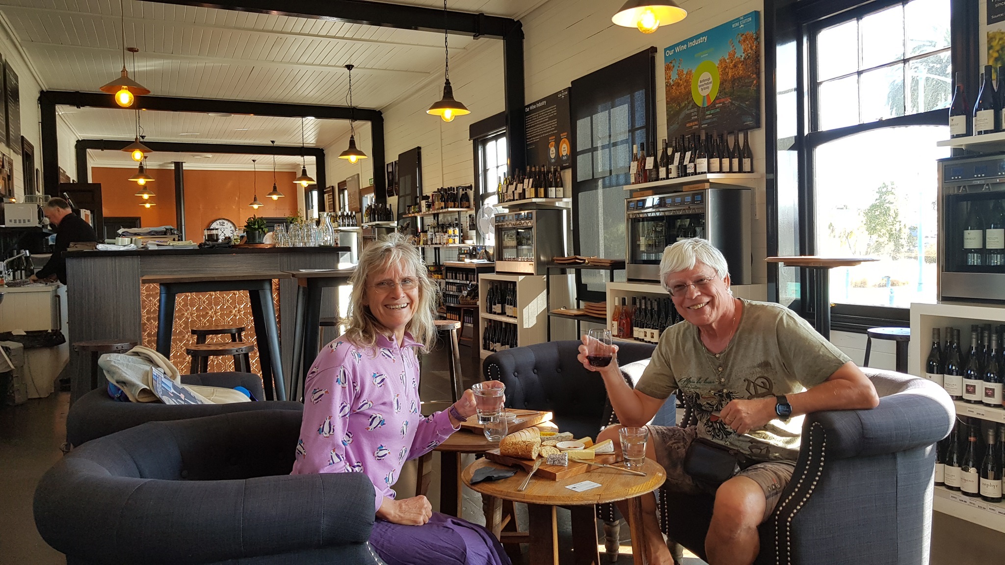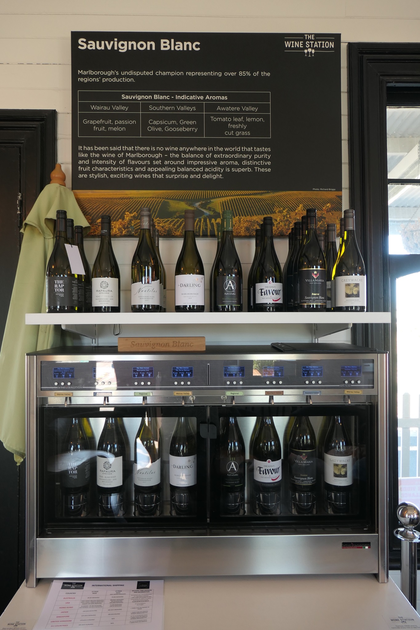 Also machen wir einen kurzer Spaziergang durch DownTown Blenheim, und dann als Ausgleich die Wein Station wo man ca. 80 verschiedene Weine aus der Umgebung verkosten kann. Aus lustigen Weinverkostungsautomaten und das funktioniert so:
