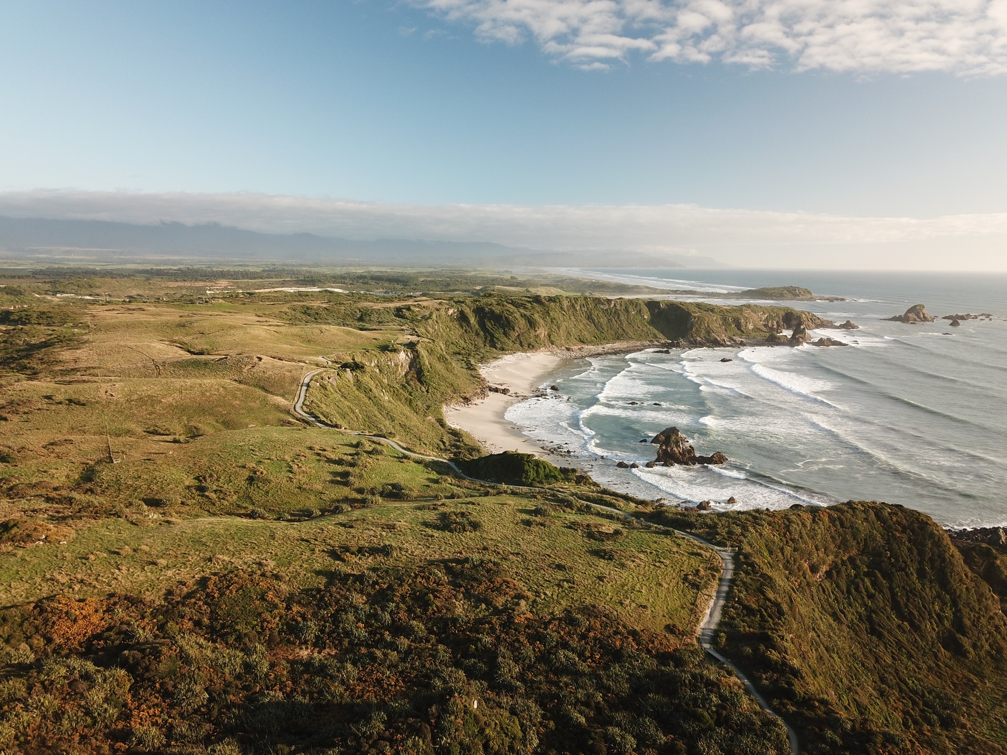 Die Reise führt uns nördlich weiter nach Westport. Bevor wir dort den Campingplatz beziehen, machen wir noch einen Abstecher nach Cape Foulwind, um die Drohne wieder einmal zu beschäftigen. Jetzt am späten Nachmittag klart der Himmel wieder auf und die Sonne gibt schönes Licht.