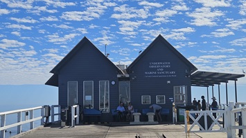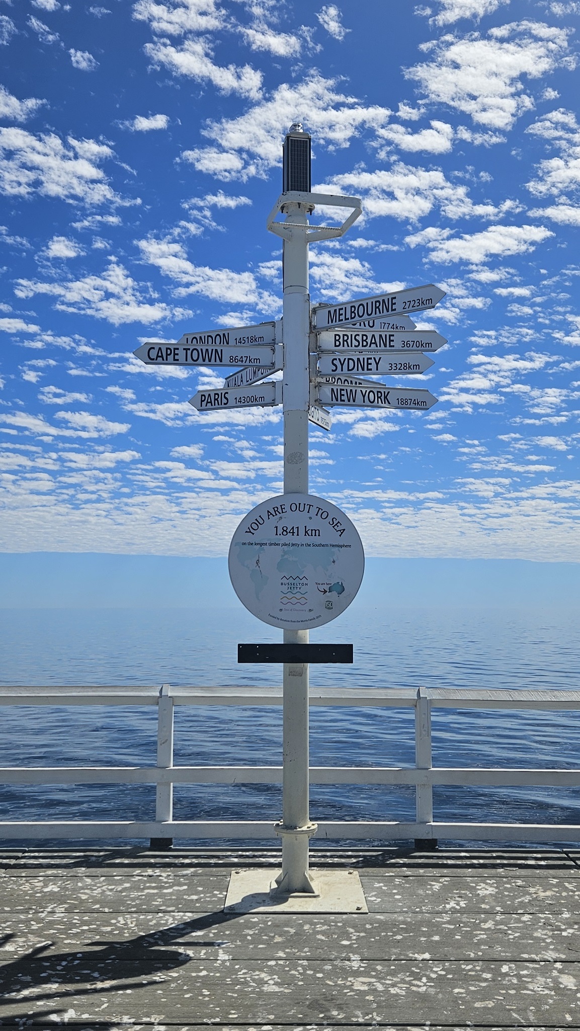 Busselton Jetty ist ein Steg in Busselton, Westaustralien. Mit einer Länge von 1.841 Metern ist es der längste Holzsteg der südlichen Hemisphäre. Am Ende befindet sich noch ein Unterwasser Observatorium.