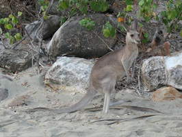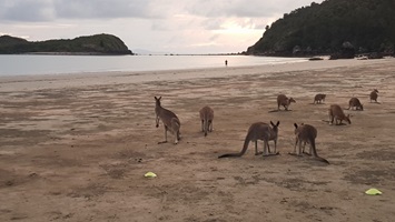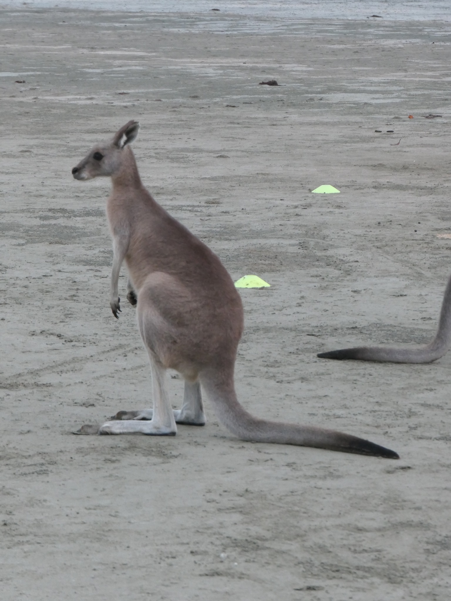 Heute fahren wir weiter in den Nationalpark Cape Hillsborough. Der Campground liegt direkt am Meer und ist bekannt dafür, das man vor Sonnenaufgang Kängurus am Strand beobachten kann. Dort angekommen, beziehen wir unsere Powered Site und machen einen Rundweg zu den verschiedenen Aussichtspunkten, auch die Drohne kommt wieder zum Fliegen.