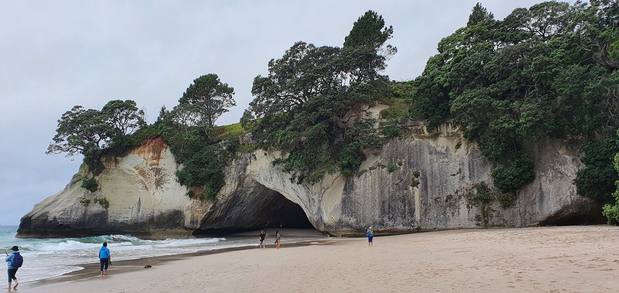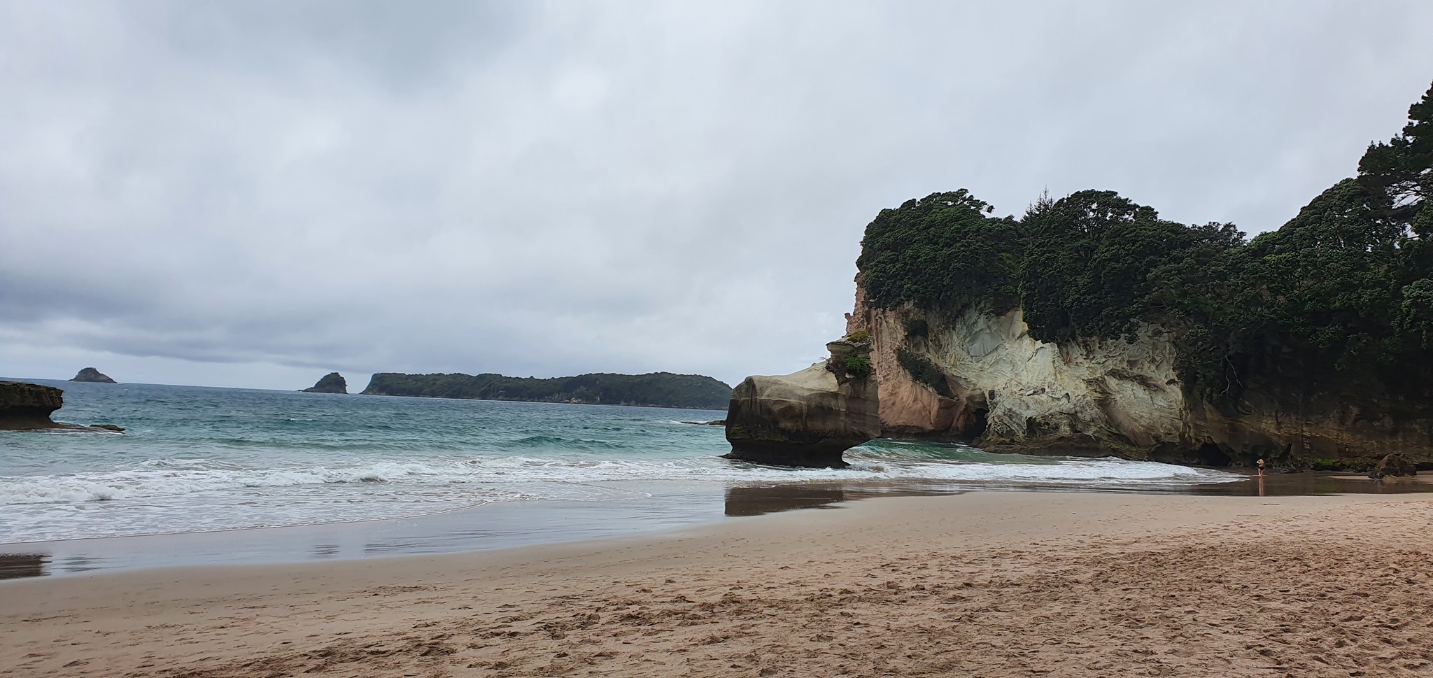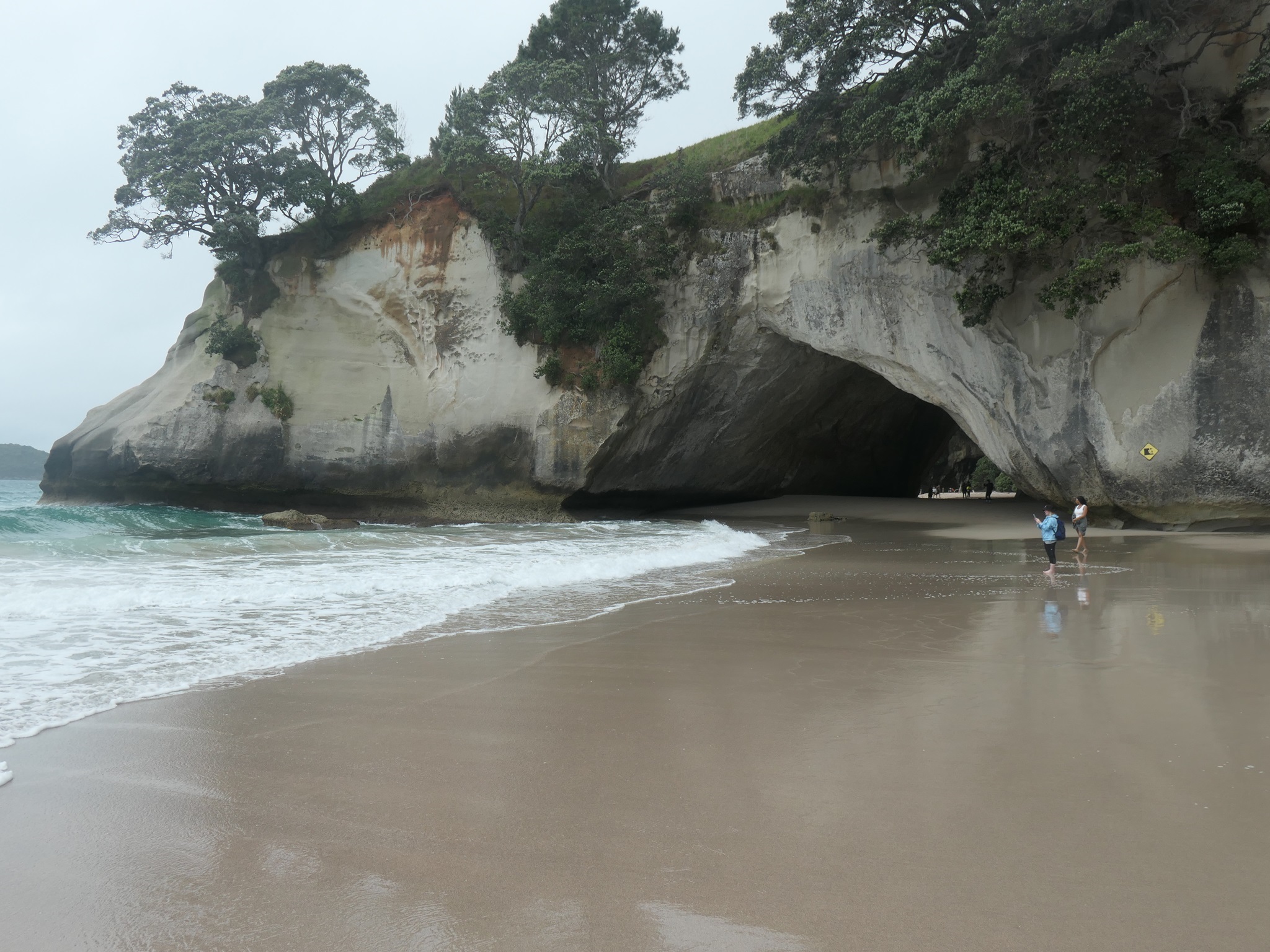 Leider fängt es über Nacht wieder heftig zum Regnen an. Wir wollen uns aber trotzdem die Cathedral Cove ansehen und nehmen dafür eine 90 Minuten Wanderung auf uns.
