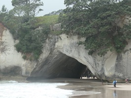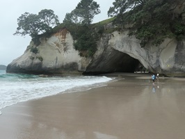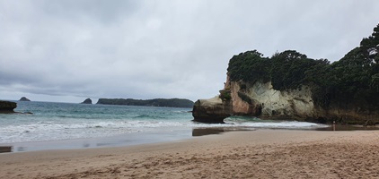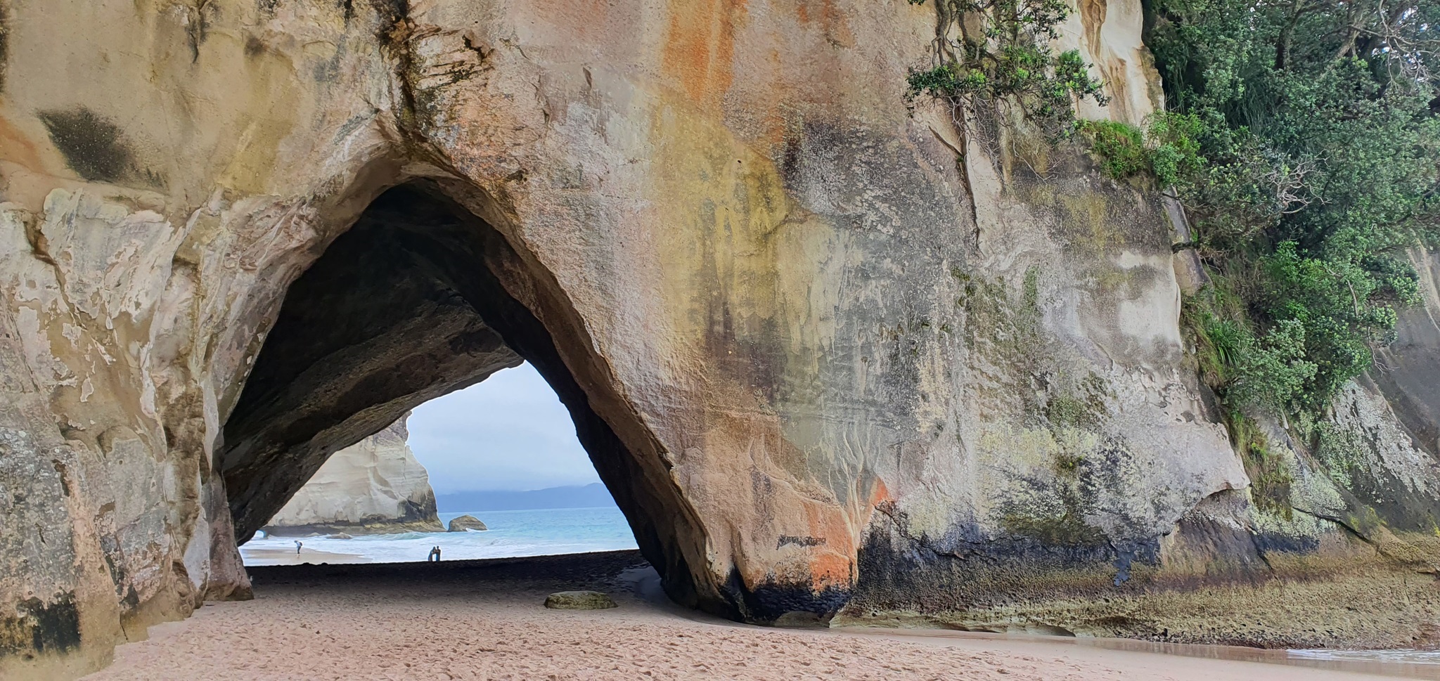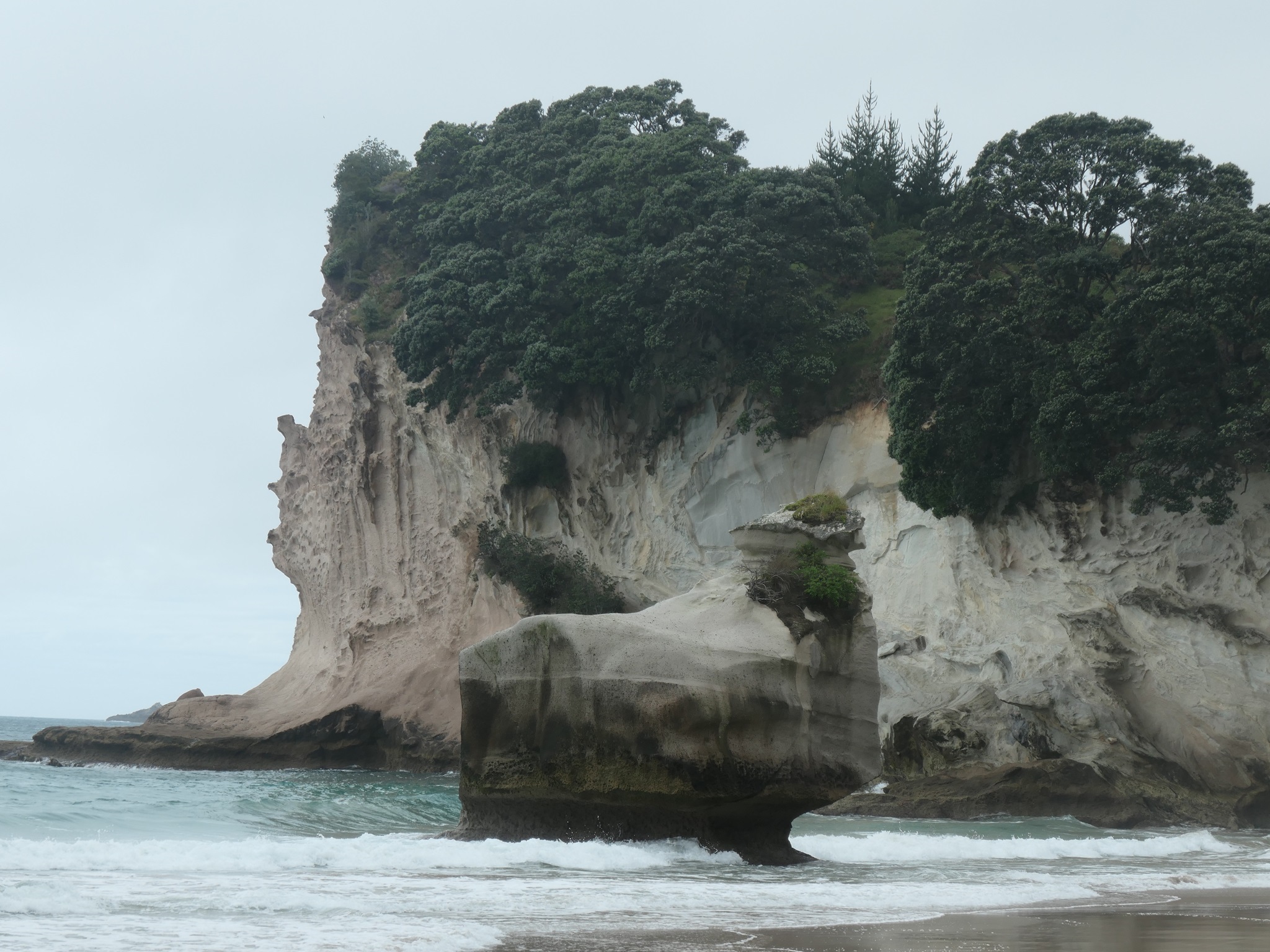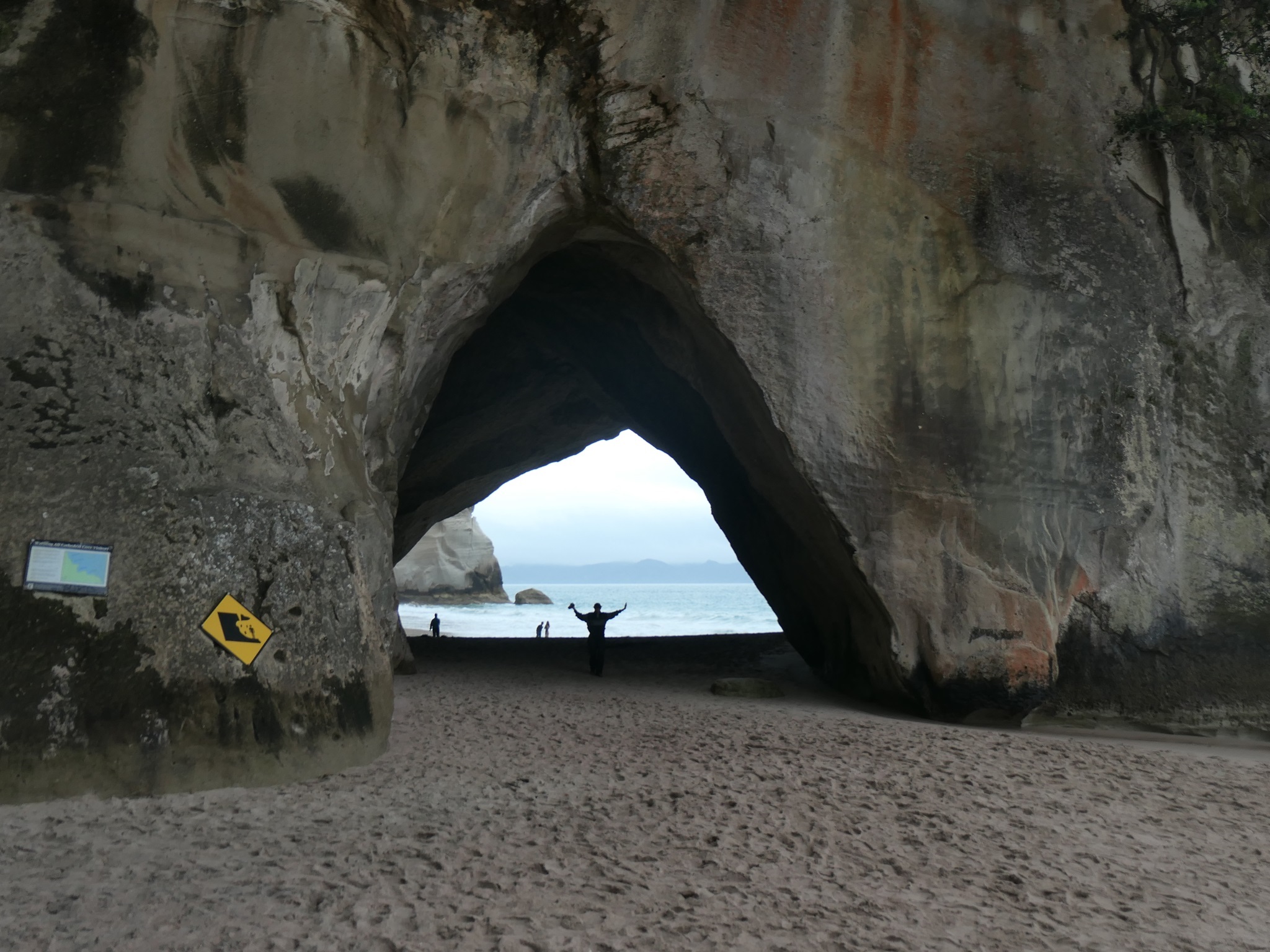 Leider fängt es über Nacht wieder heftig zum Regnen an. Wir wollen uns aber trotzdem die Cathedral Cove ansehen und nehmen dafür eine 90 Minuten Wanderung auf uns.