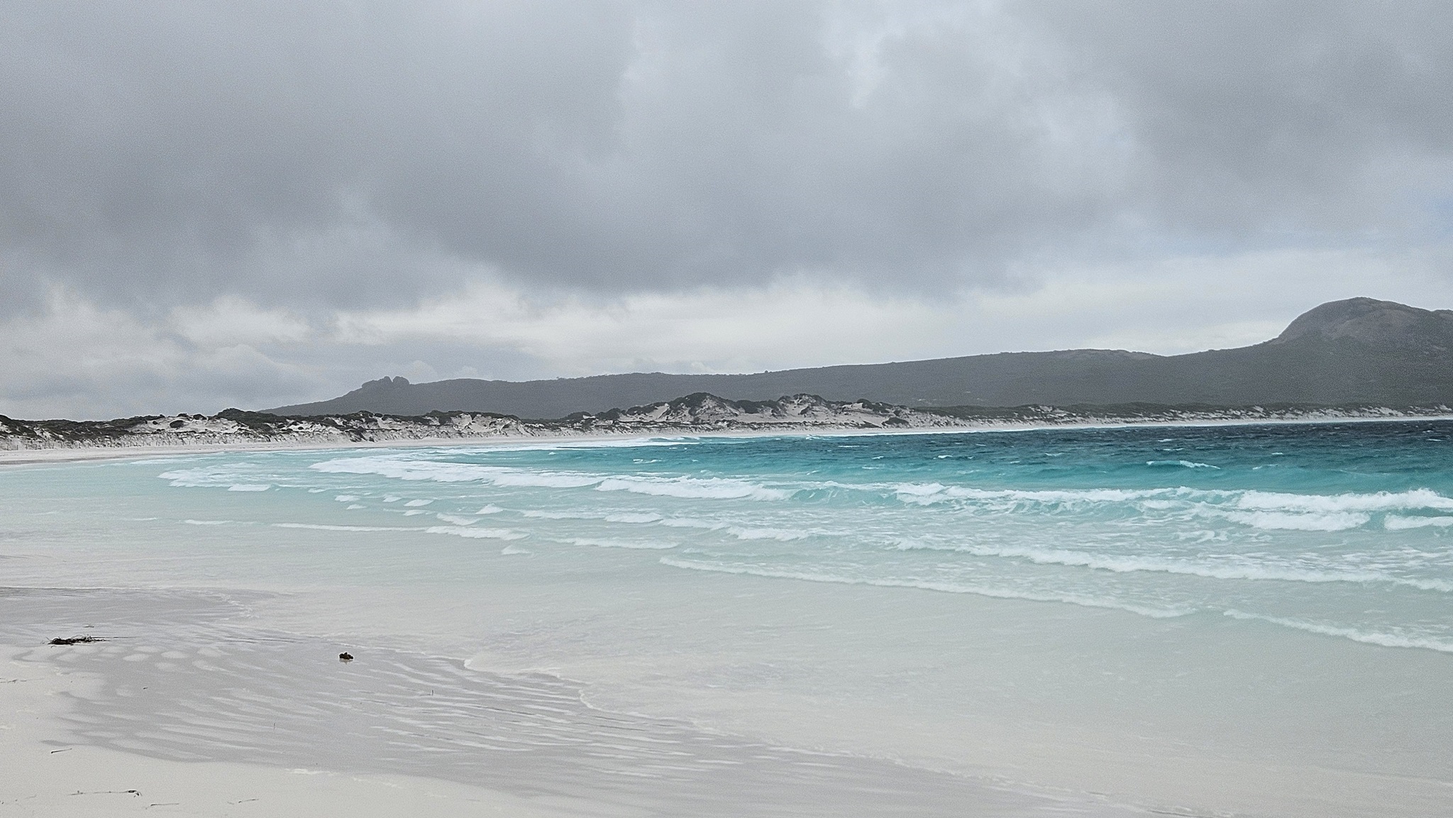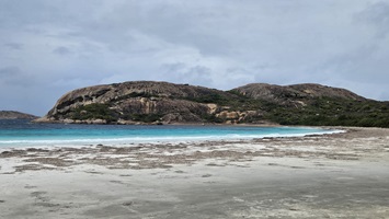 Morgens wieder Regen, aber wir fahren wie geplant in den Cape Le Grand Nationalpark, weil wir wollen unbedingt die Lucky Bay sehen, die für seinen strahlend weißen Sand und sein türkisfarbenes Wasser bekannt ist.