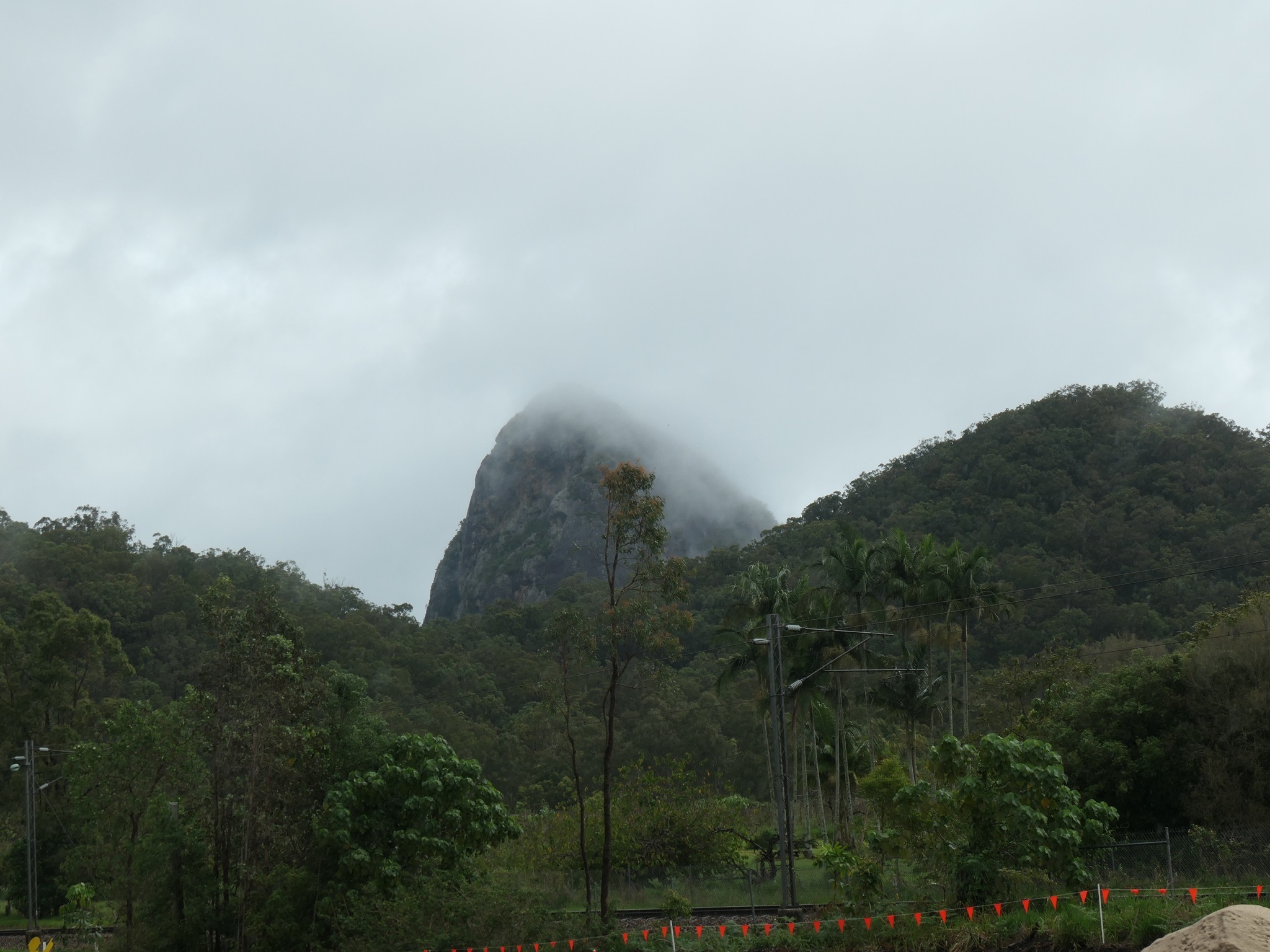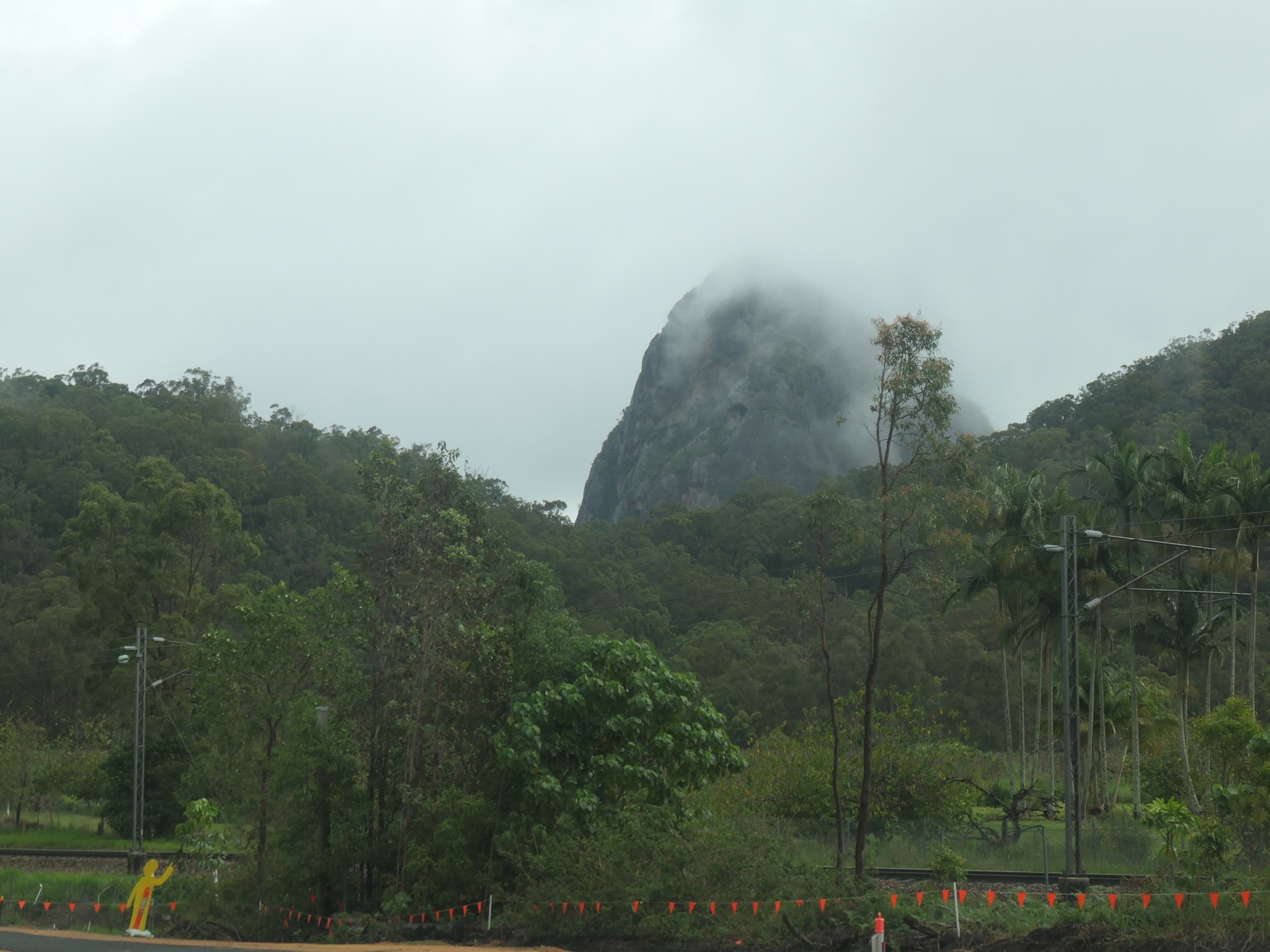 Regen, Regen, Regen, man kann nichts anfangen hier, also fahren wir ins hügelige, wunderschöne Hinterland nach Montville und Maleny. Aber Ihr ahnt es sicher, der Regen begleitet uns auch heute den ganzen Tag. Nebelschwaden ziehen über die Glass House Mountains.