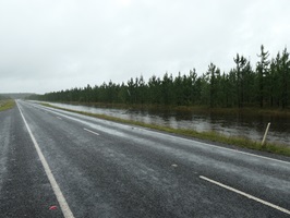 Es regnet auch diese Nacht fast durch, heftig prasselt der Regen auf unser Autodach und um das Auto herum ensteht ein kleiner See, Fußwäsche umsonst.