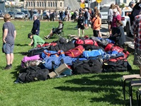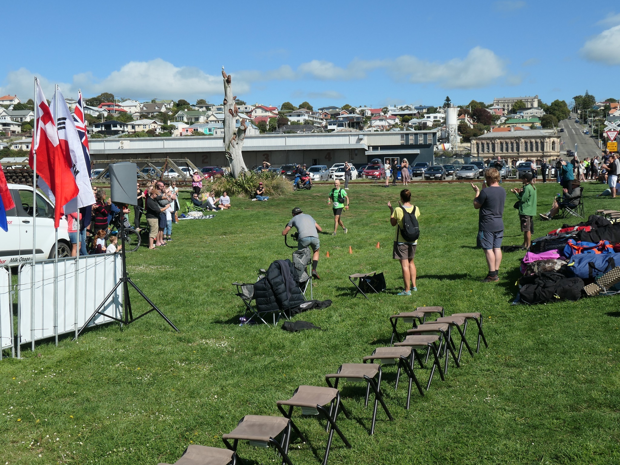 Bevor wir Richtung Dunedin aufbrechen, machen wir noch einen Morgenspaziergang in Omaru. Wir kommen genau zum Siegereinlauf des 7 Tage Backpacker Rennens zurecht. Da geht es in 7 Tagen von Mount Cook bis Omaru, etwa 200 Km Laufwandern. Alle Achtung.