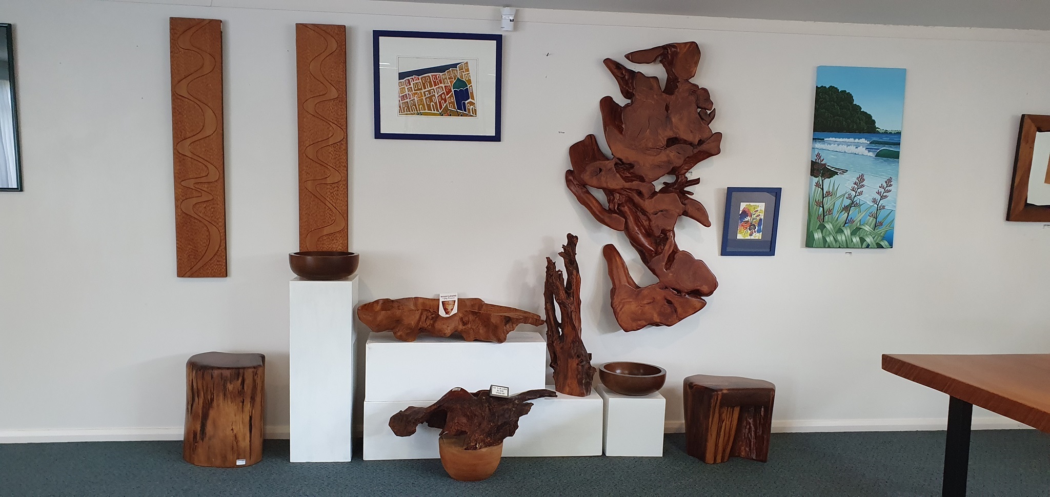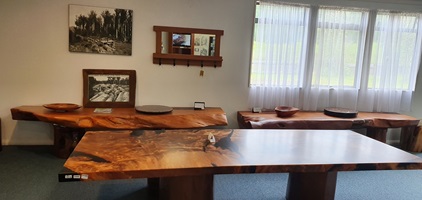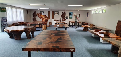 Wir fahren weiter nach Kaihu, wo wir bei "Nelson Kaihu Kauri", ein Künstler der das Kauri Holz verarbeitet und eine tolle Ausstellung mit Möbel und allerlei Gebrauchsgegenstände und Souvenirs darbietet. Dabei verwendet er Kauri Holz, welches aus den Sümpfen geborgen wird und bis zu 36.000 Jahre alt ist.