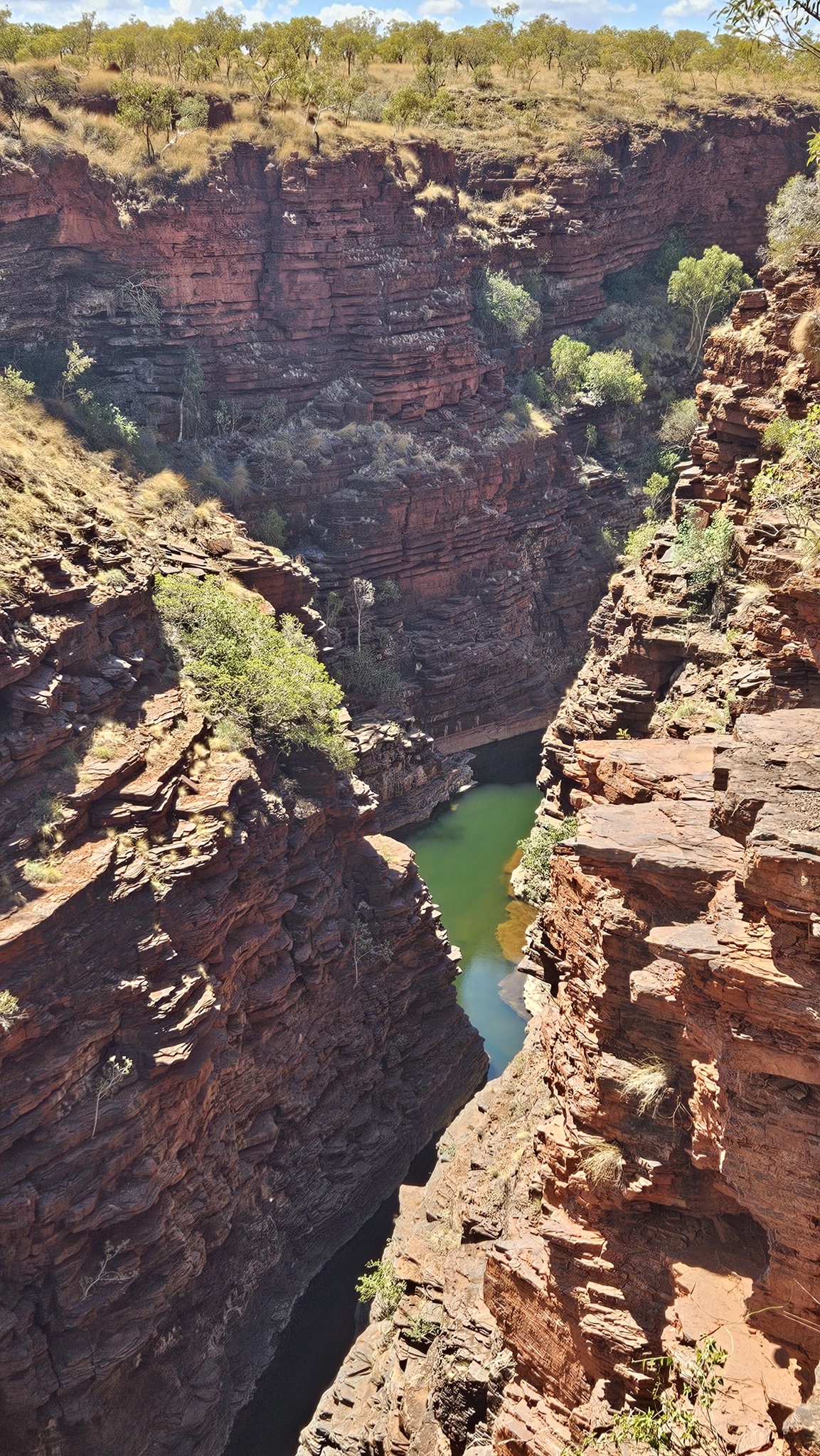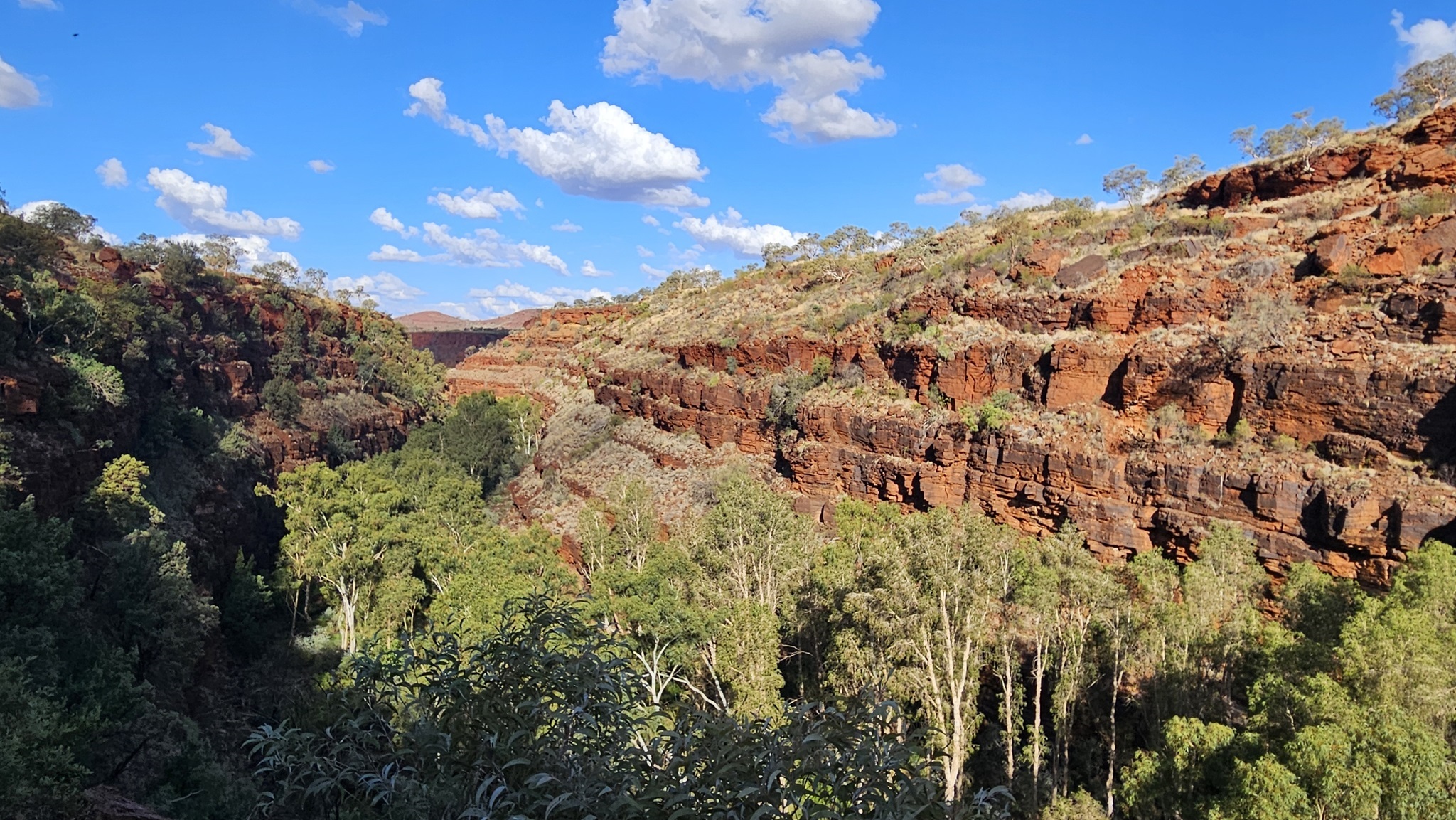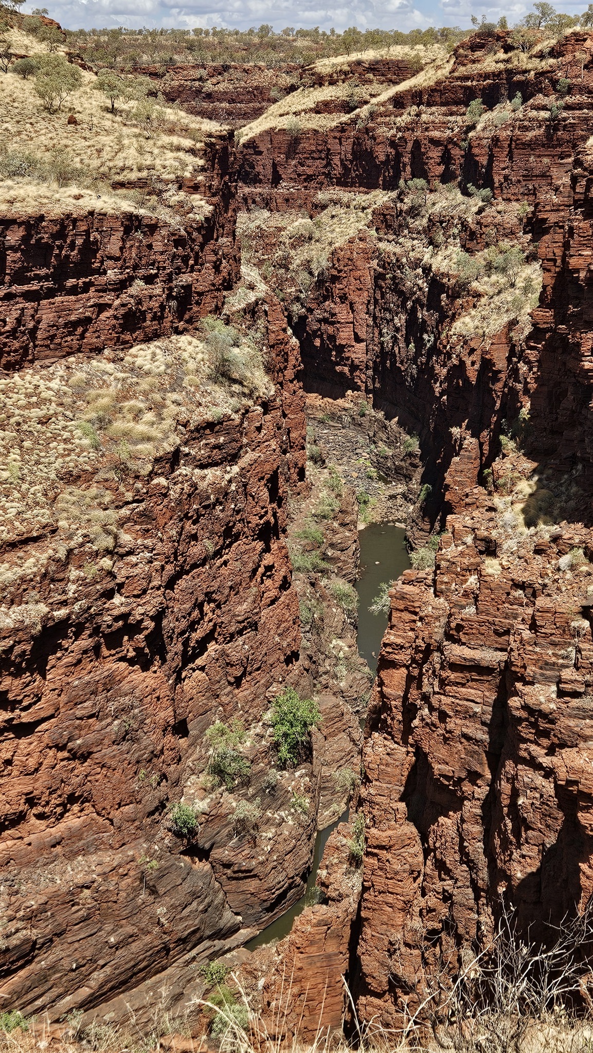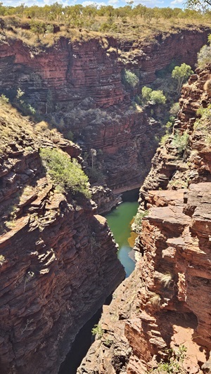 Mit 627.422 Hektar ist der Karijini-Nationalpark der zweitgrößte Nationalpark in Westaustralien (nach dem Karlamilyi-Nationalpark ) und beherbergt Felsformationen, deren Alter auf 2,5 Milliarden Jahre geschätzt wird. Der Park ist vor allem für seine zahlreichen Schluchten (Gorge) bekannt , die enge Canyons , Wasserfälle und Wasserlöcher enthalten , in denen Besucher gelegentlich in den Becken baden.