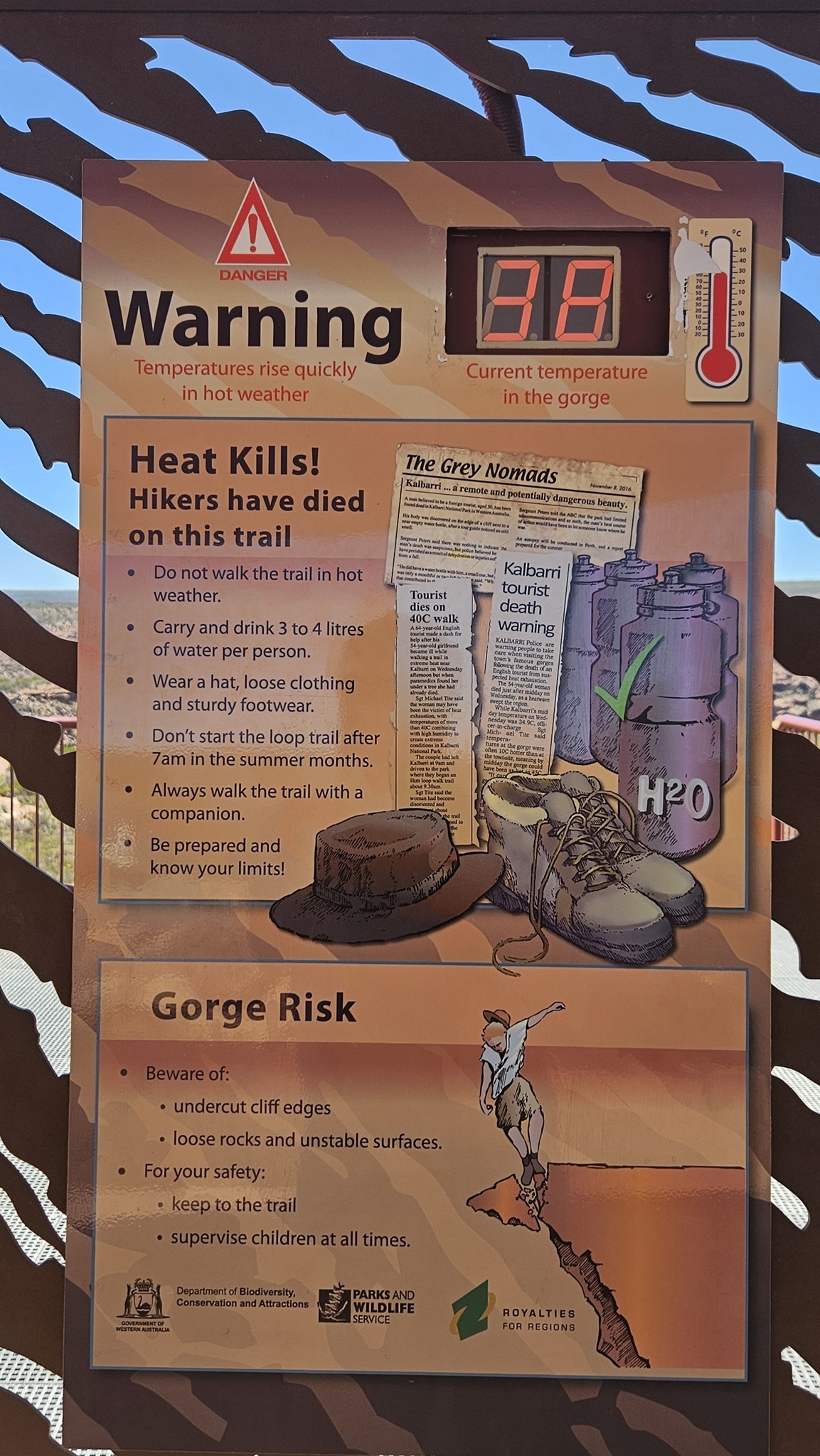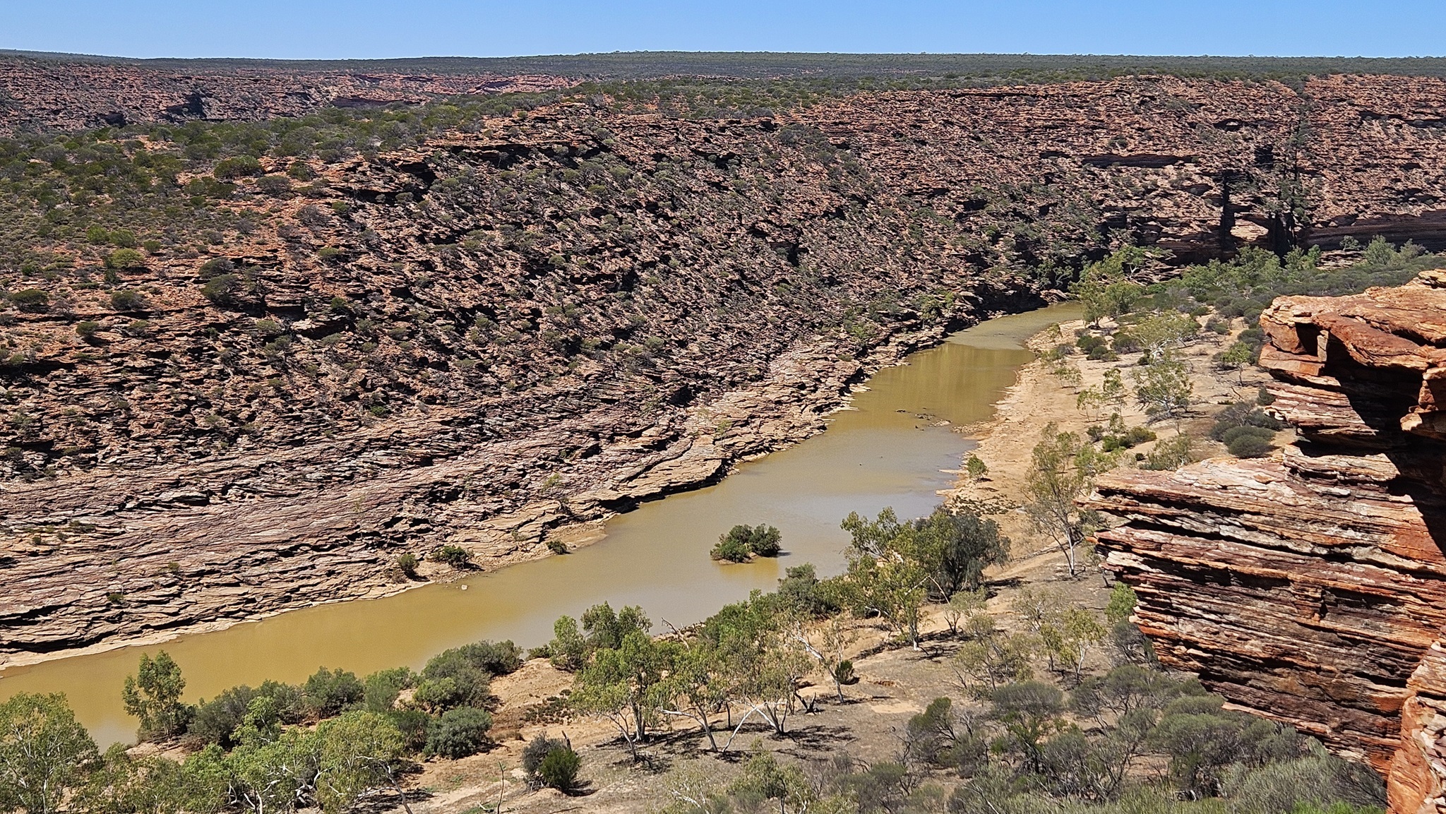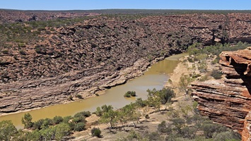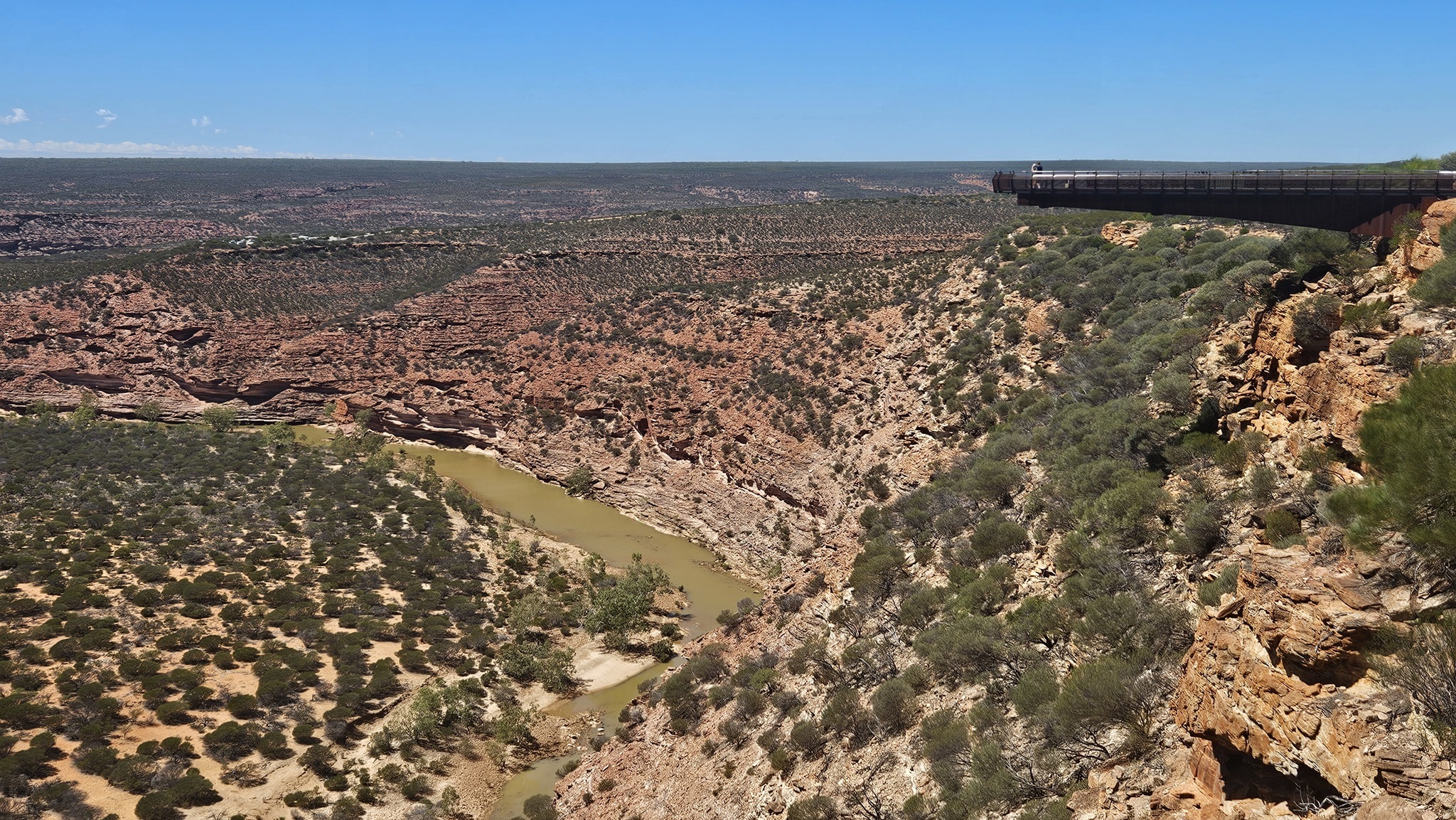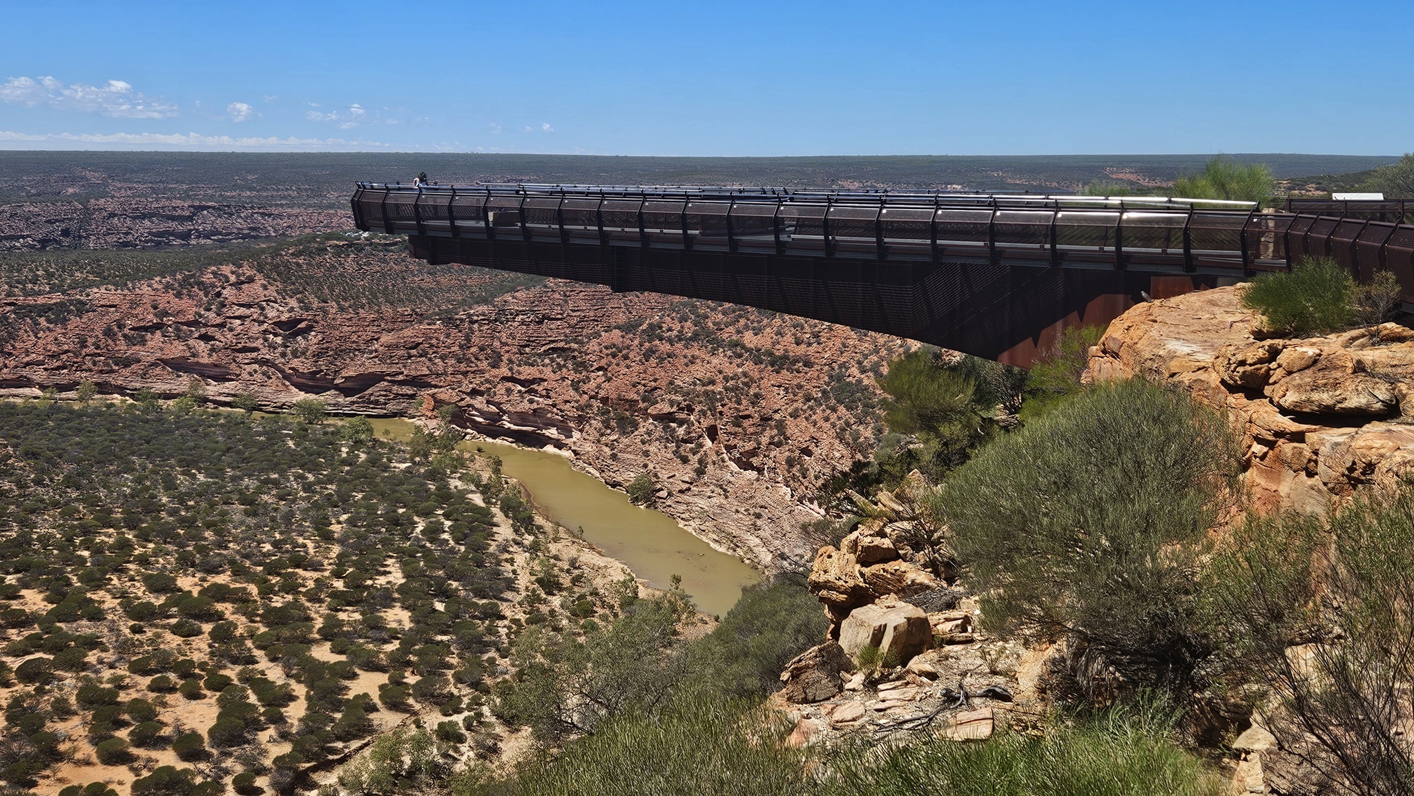 Die Highlights sind, Kalbarri Skywalk, zwei große Aussichtsplattformen, Nature's Window und der Z Bend.