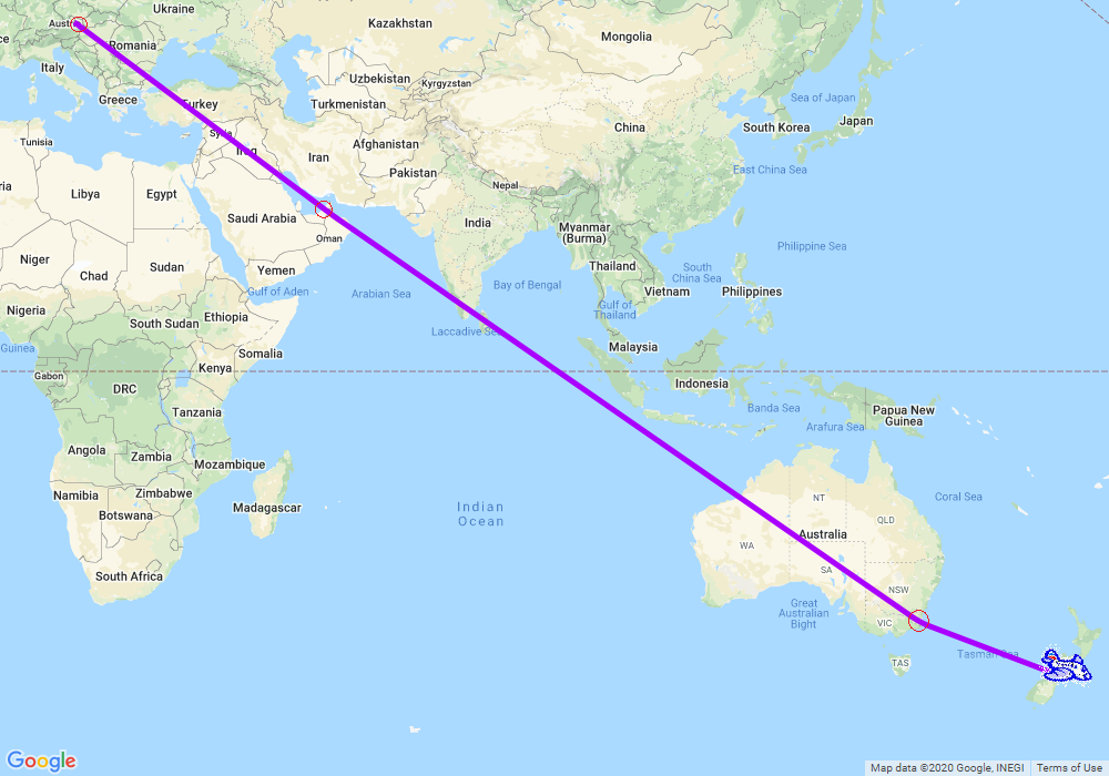das macht ca. 28 Stunden gesamte Reisezeit.