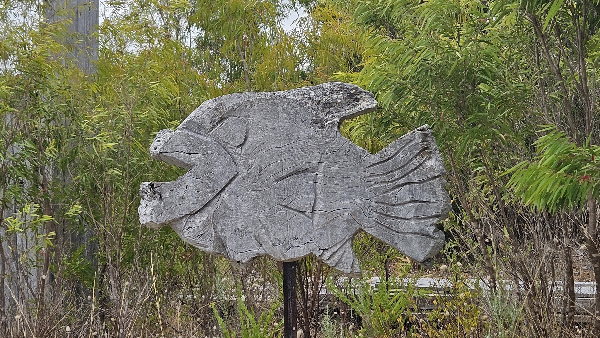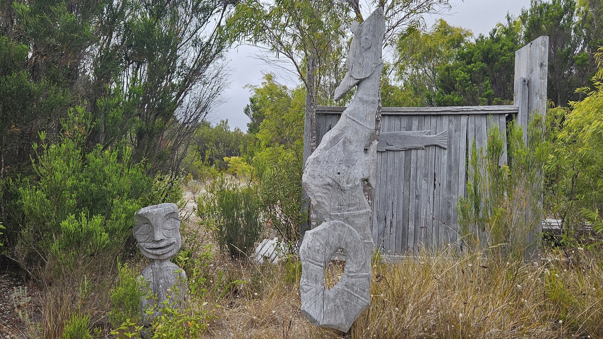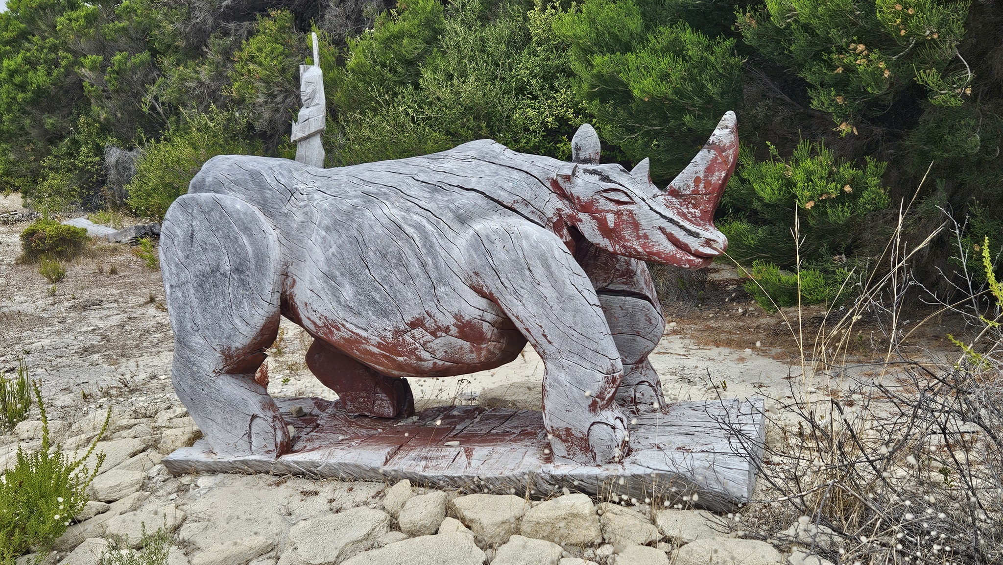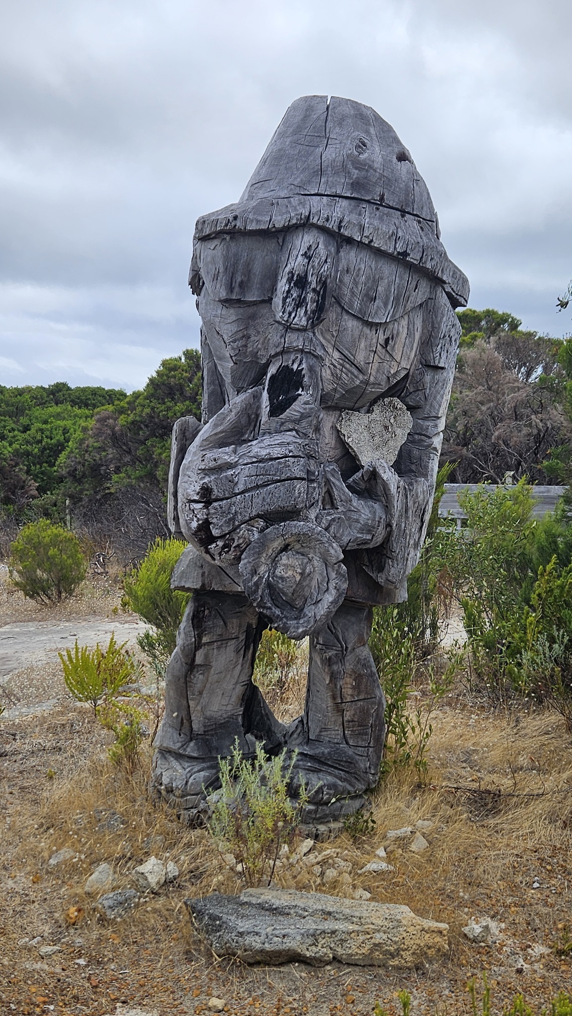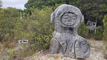 Auf den Weg nach Margaret River entdecken wir noch einen Sculpture Park, den wir natürlich auch gleich erkunden. Es ist kein Mensch da. Am Eingang liegt auf einem Tisch eine normale, nicht versperrte Tupper Ware Dose, wo wir die 10 $ Eintritt hineinlegen sollen. Da liegt schon einiges Geld drinnen, und noch immer drinnen. Die Australier sind halt ehrliche Menschen, wir auch.