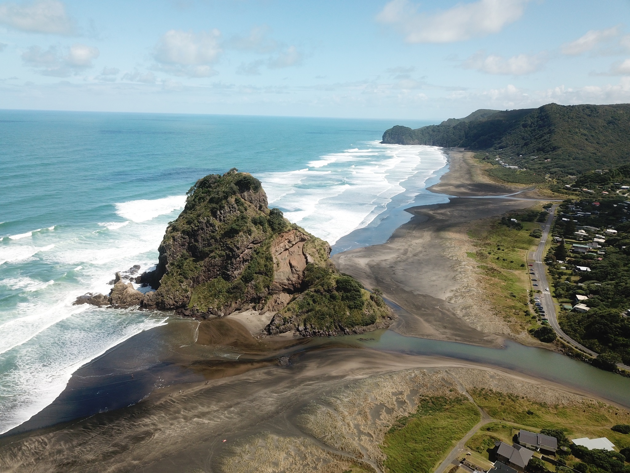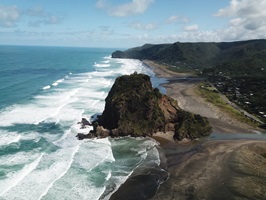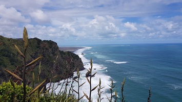 Heute geht's weiter Richtung Auckland. Weil endlich wieder die Sonne so schön scheint machen wir vorher noch 2 "must do". Den Tasman Lookout, den man über den schwarzen Strand erreicht, und den Mercer Bay Loop.