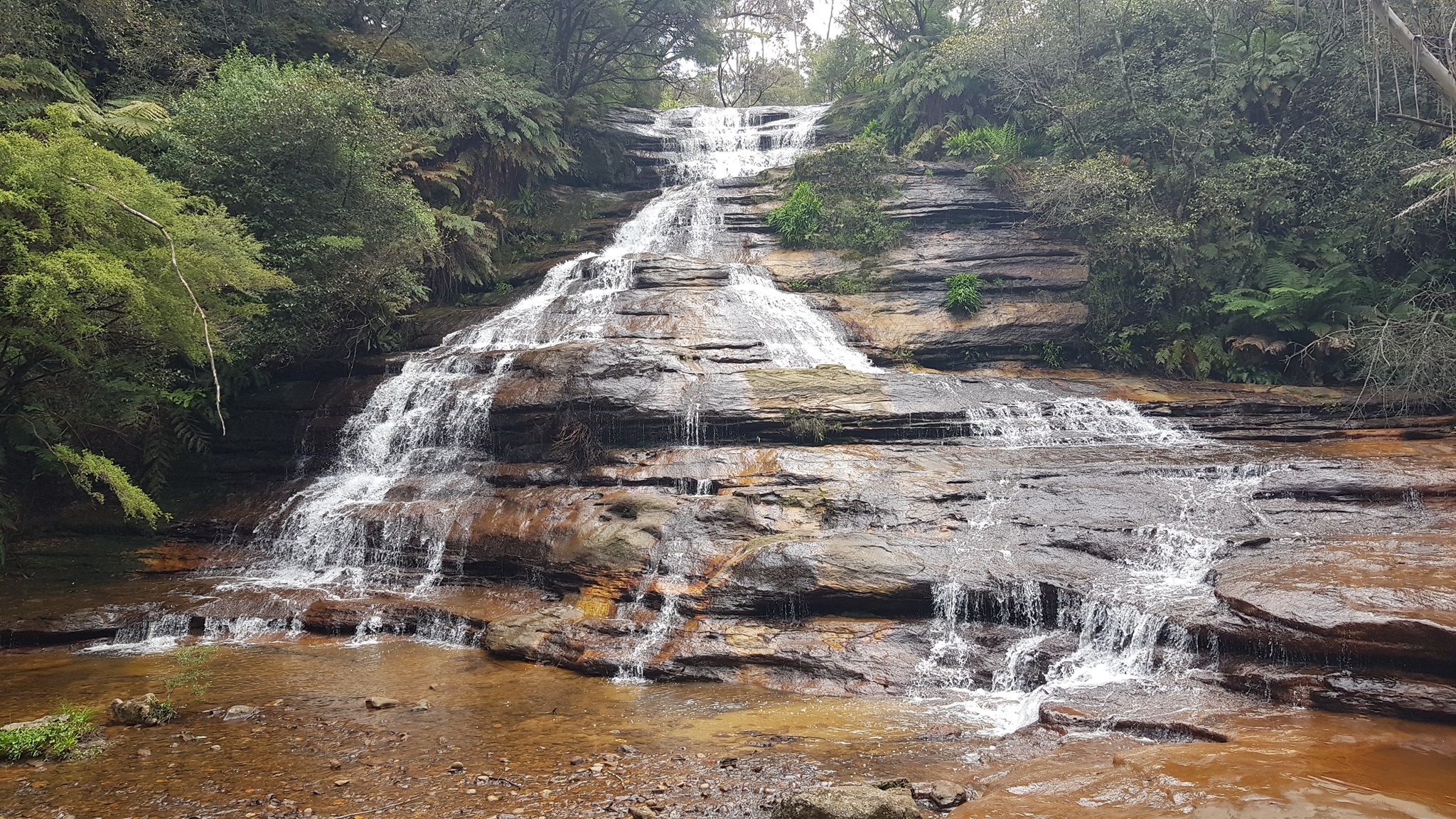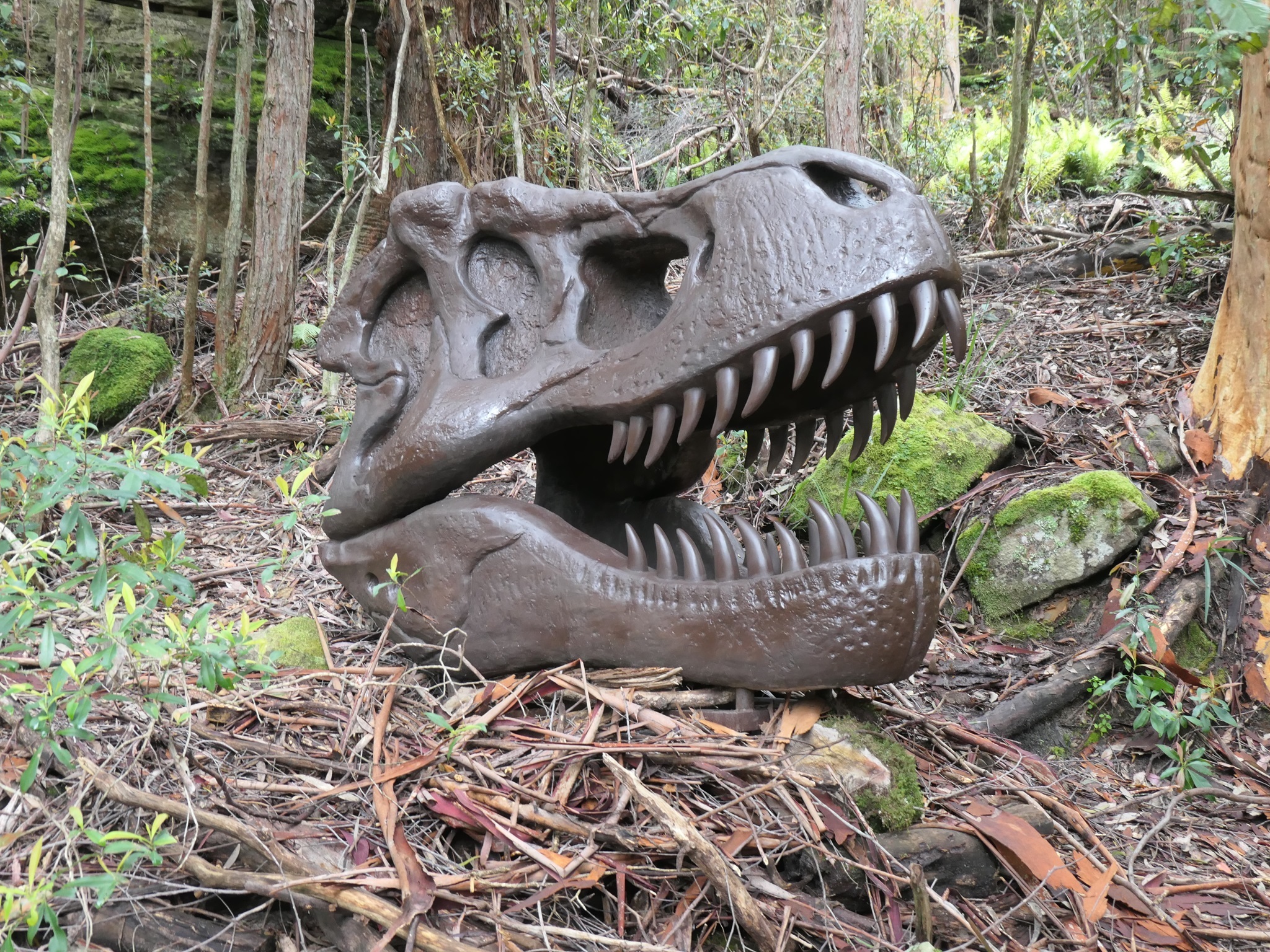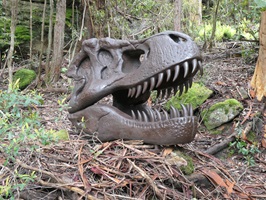 Ein Boardwalk führt auf verschiedenen Routen 2,4 km durch den Regenwald des Jamison Valley, vorbei an ehemaligen Kohleabbau Stollen und Dinosaurier Ausgrabungen.