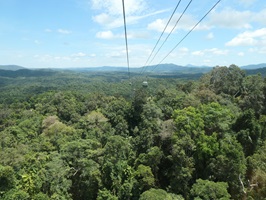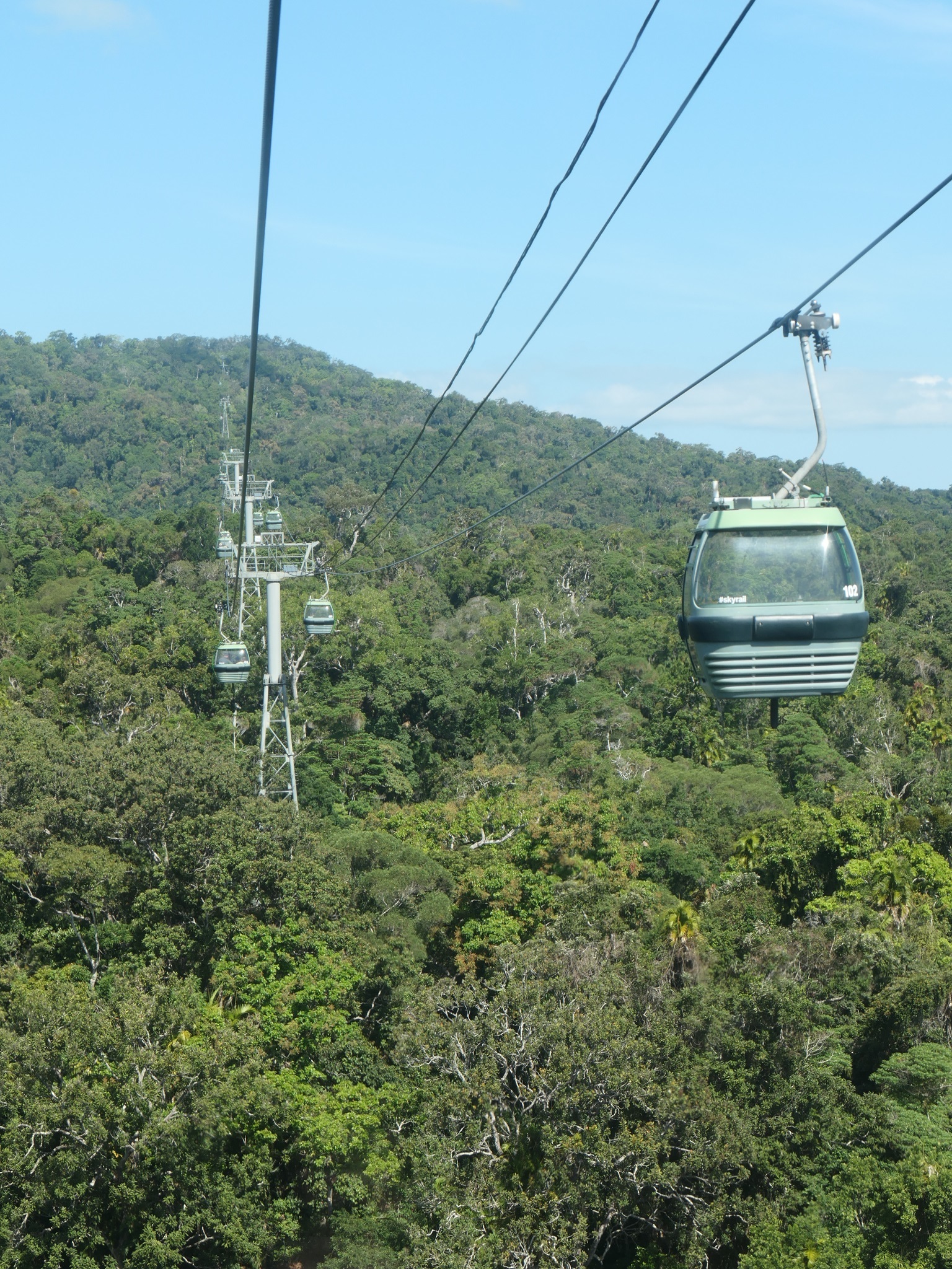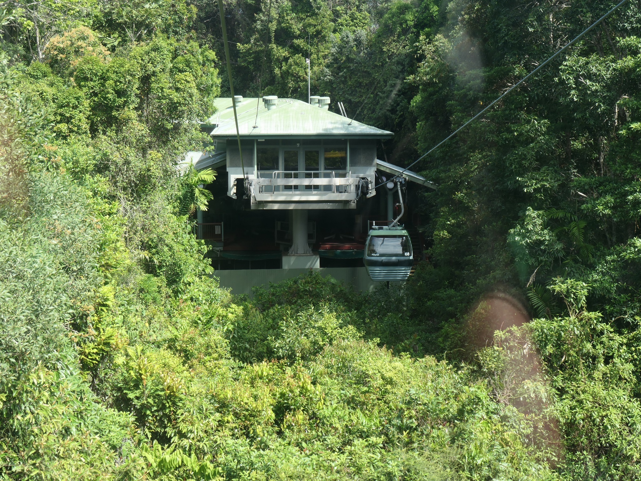 In drei Etappen geht es über 7,5 Kilometer über dem Regenwald nach Kuranda. Für den Zug, Skytrain, gab es leider keine Karten mehr, über eine Woche schon ausgebucht.