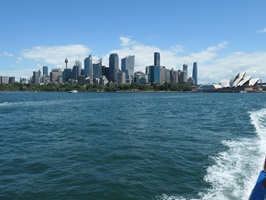 Wir fahren mit der Bahn bis ins Zentrum von Sydney. Nach einem kleinen Rundgang, der natürlich die Oper einschließt, beschließen wir, mit der Fast Ferry nach Manly zu fahren. Der bekannt schöne Strand dort ist 3 km lang und 1964 fanden hier die ersten Surfwettbewerbe der Welt stattfand .