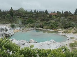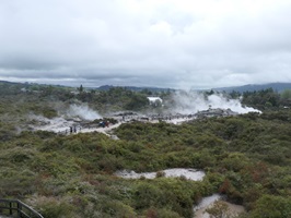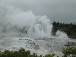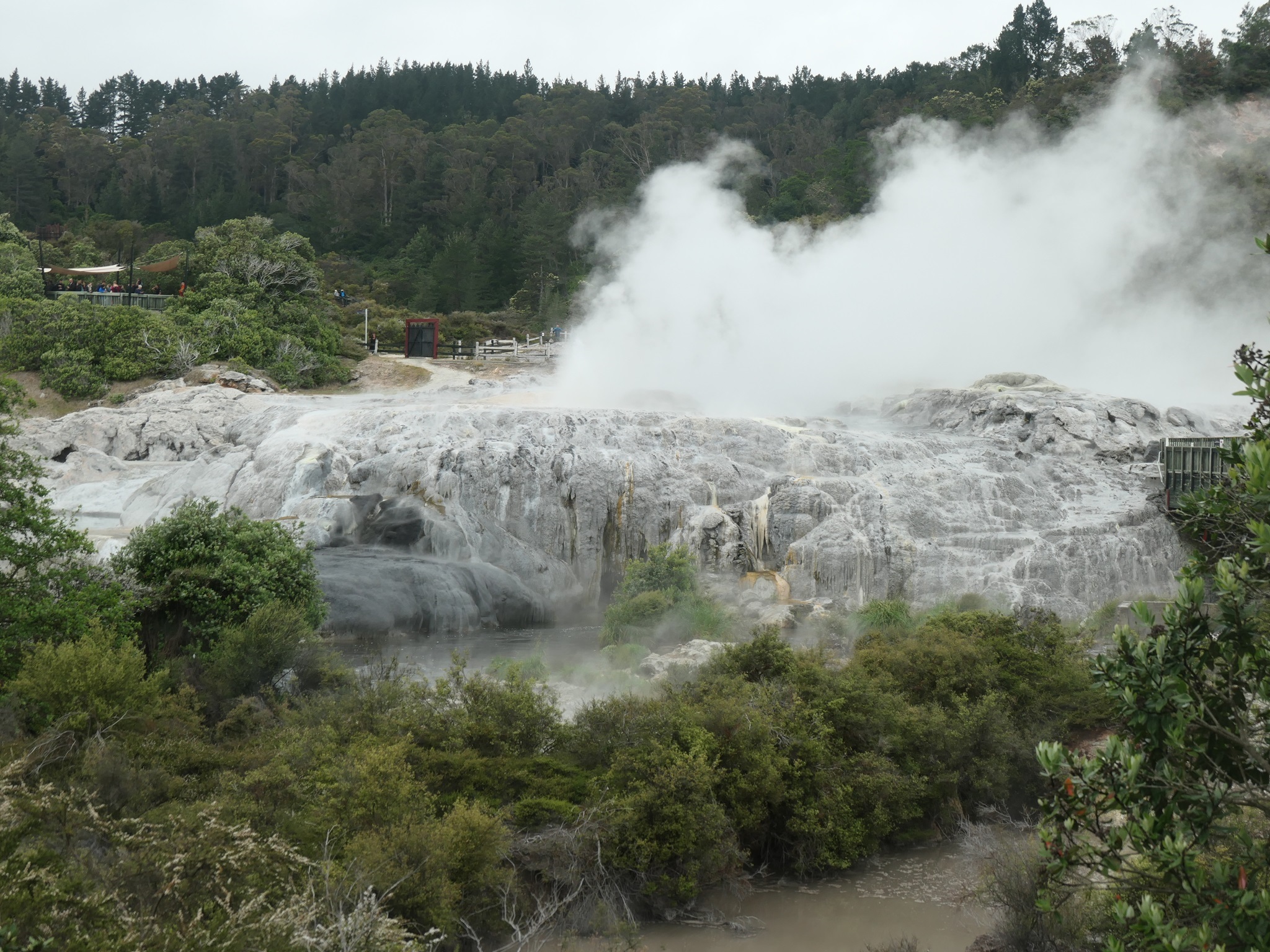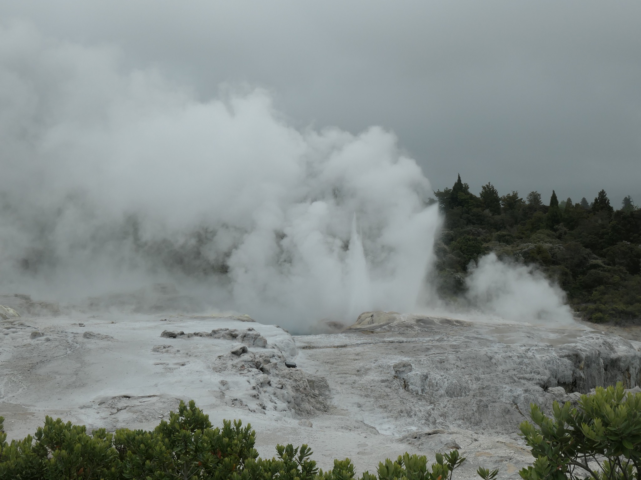 Te Puia ist ein geothermisches Wunderland in Rotorua, mit dramatischen Geysiren, blubbernden Schlammbecken, traditionellen Māori-Schnitzern und -Webern an der dortigen nationalen Schule, und eine Kiwi Aufzuchtsstation.