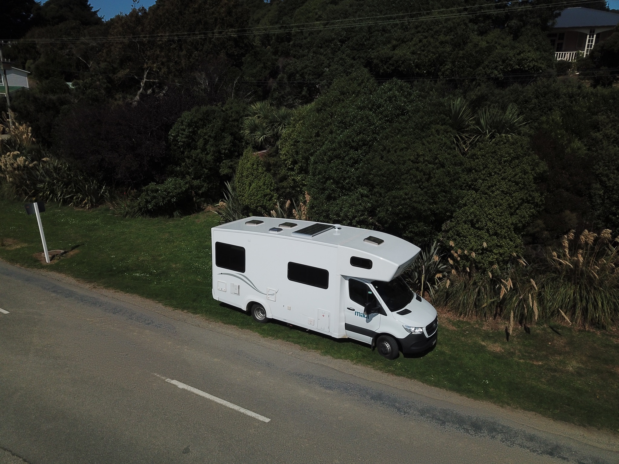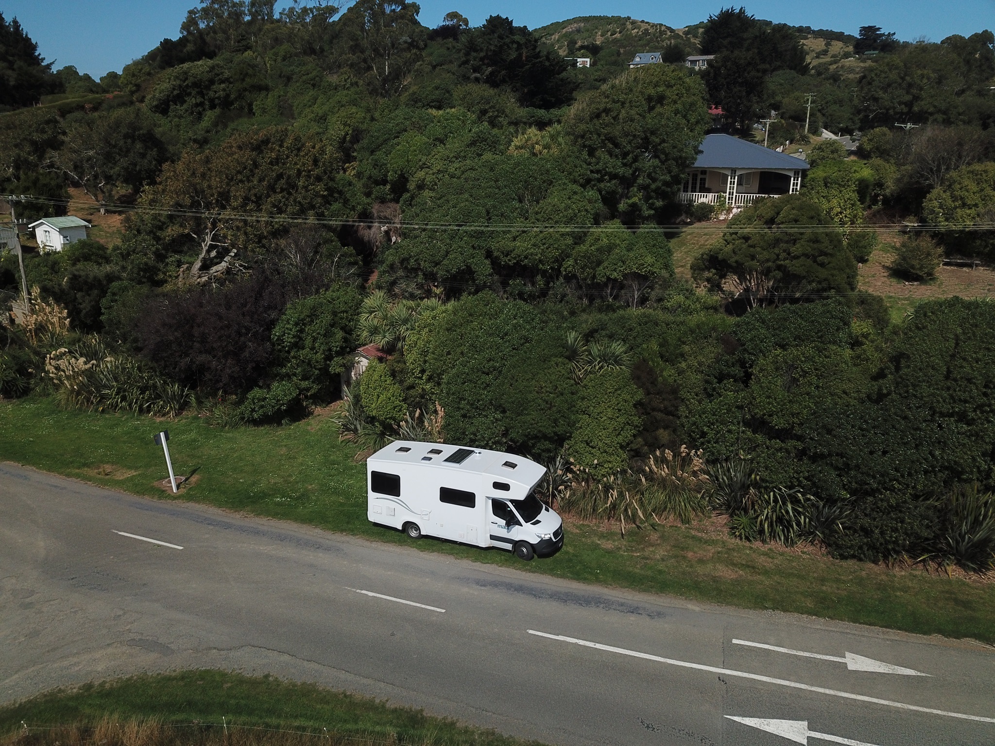 Erst mit der Drohne haben wir entdeckt, dass wir auch Photovoltaik am Dach haben.