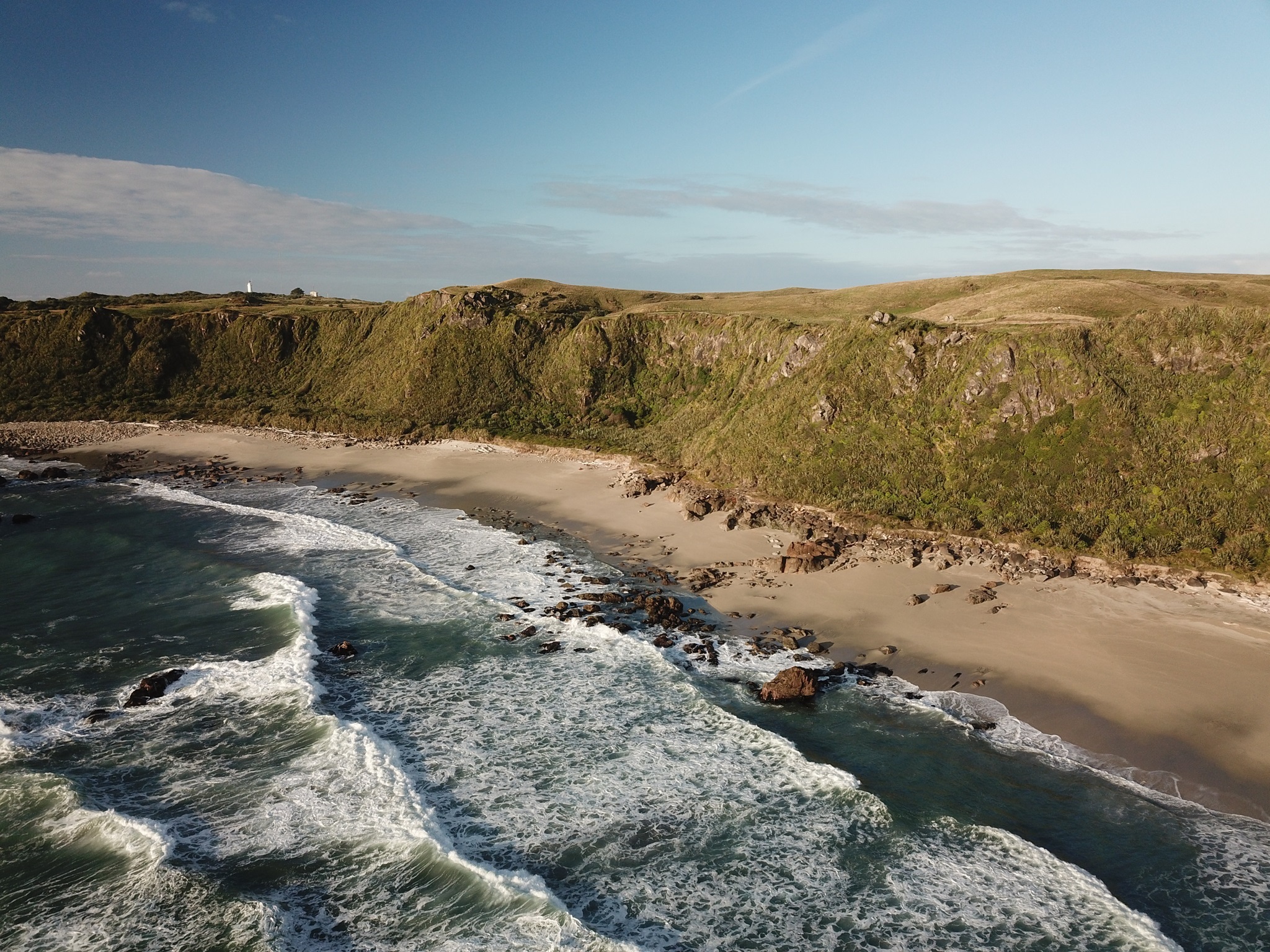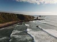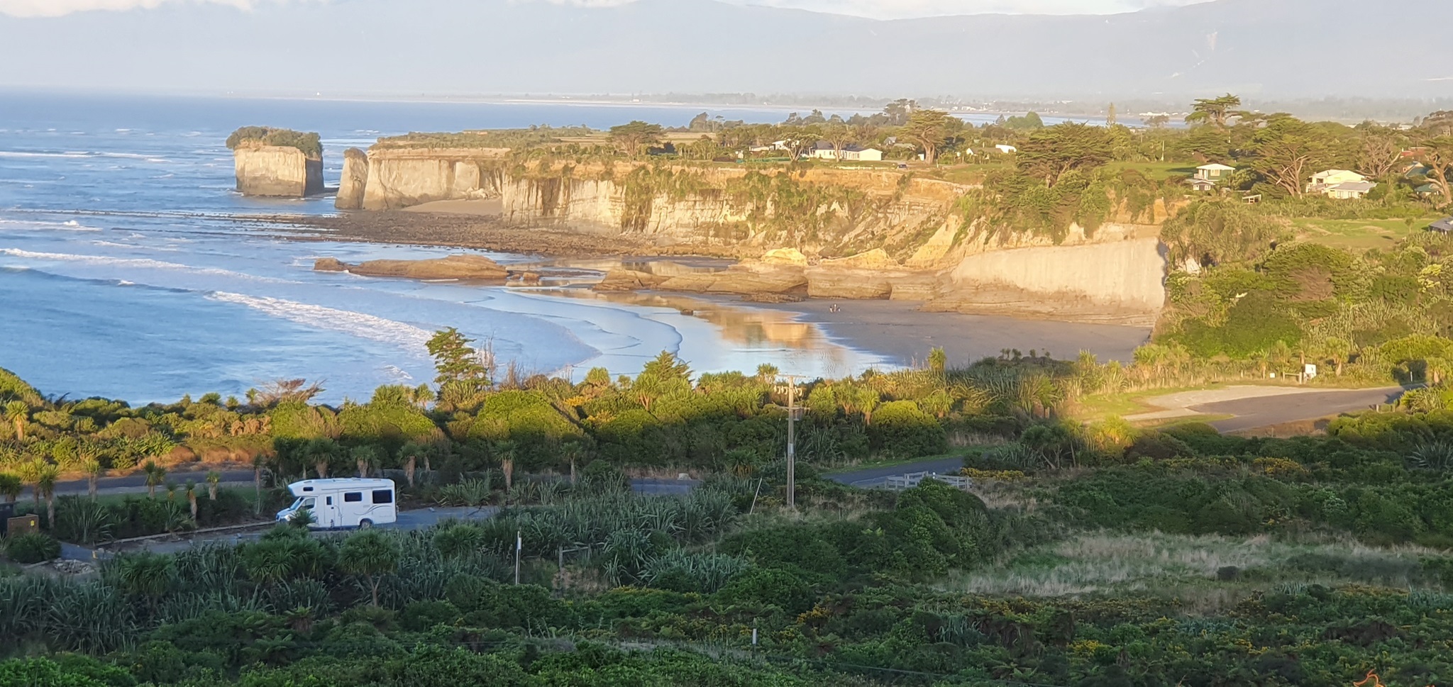 Die Reise führt uns nördlich weiter nach Westport. Bevor wir dort den Campingplatz beziehen, machen wir noch einen Abstecher nach Cape Foulwind, um die Drohne wieder einmal zu beschäftigen. Jetzt am späten Nachmittag klart der Himmel wieder auf und die Sonne gibt schönes Licht.