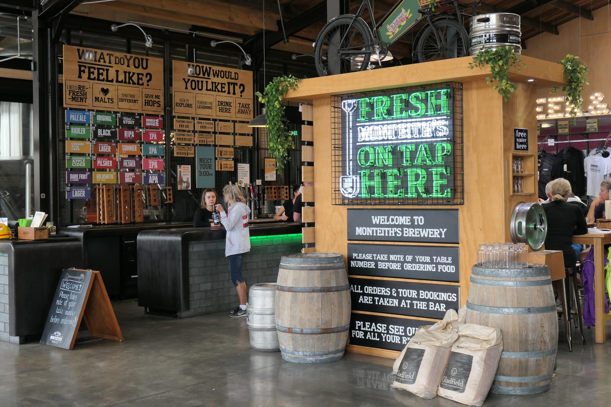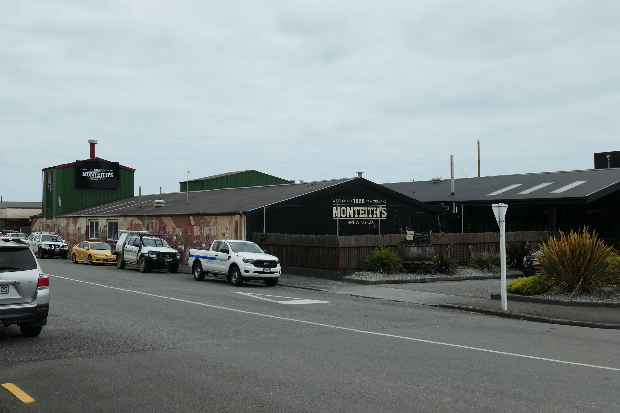 Von Hokitika brausen wir der bewegten, rauhen Küste entlang nach Greymouth. Dort angekommen ging es gleich zum wichtigsten Gebäude der Stadt, "Monteith's Brewery". Wir verkosten dort eine 6er Garnitur und verspeisen auch ein paar Rippchen dazu. Natürlich wird auch der Reiseproviant ergänzt.
