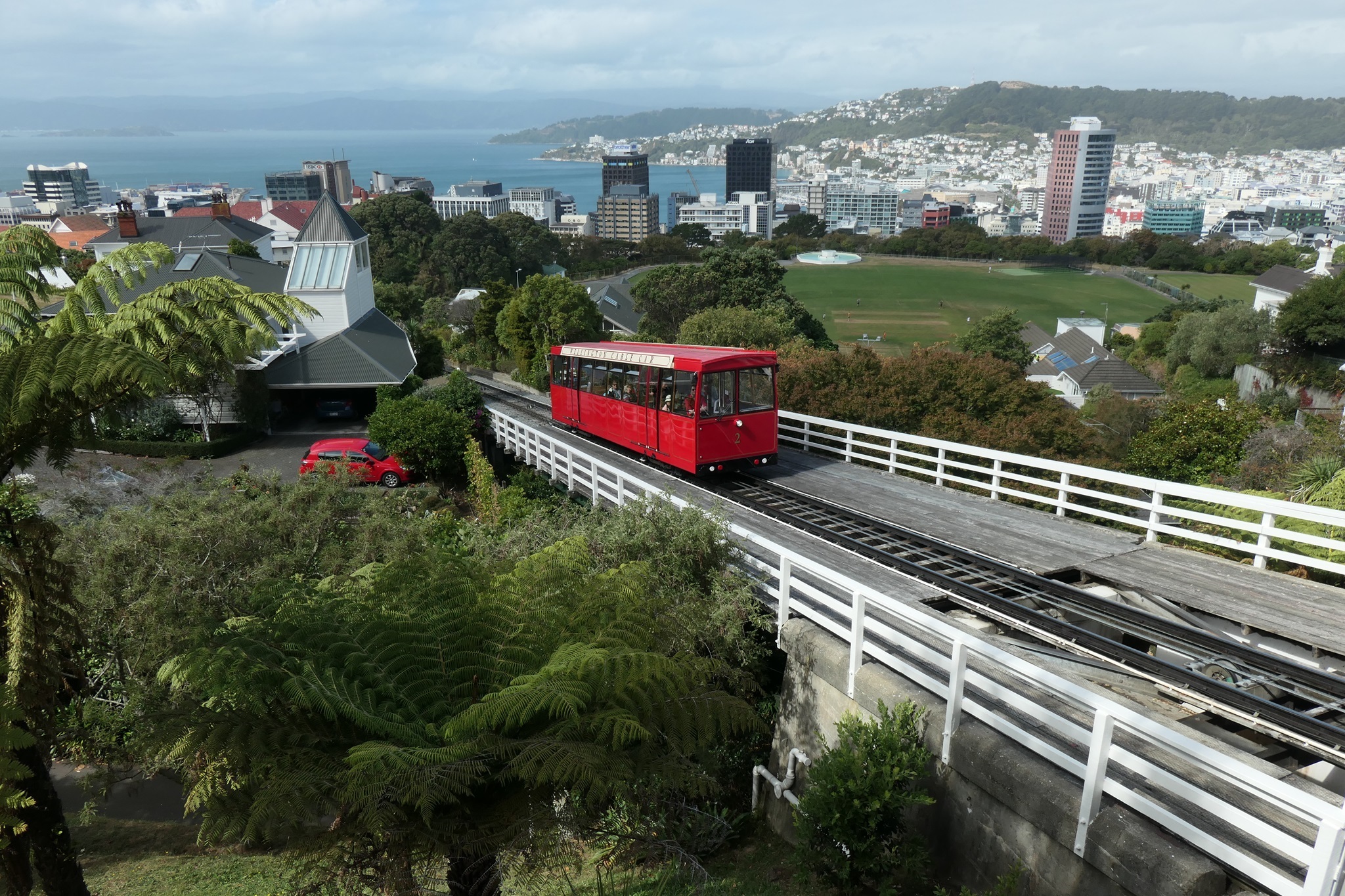 Heute fahren wir öffentlich mit dem Bus vom Campingplatz nach Wellington. Wir machen mit einem HOPon HOPoff eine Stadtrundfahrt. Anschließend mit der Cable Car die Strecke von 610 m und 120 Höhenmeter zum Stadtteil Kelburn. Danach zu Fuß durch den 25 ha großen Botanischen Garten hinunter zum Rose Garden.