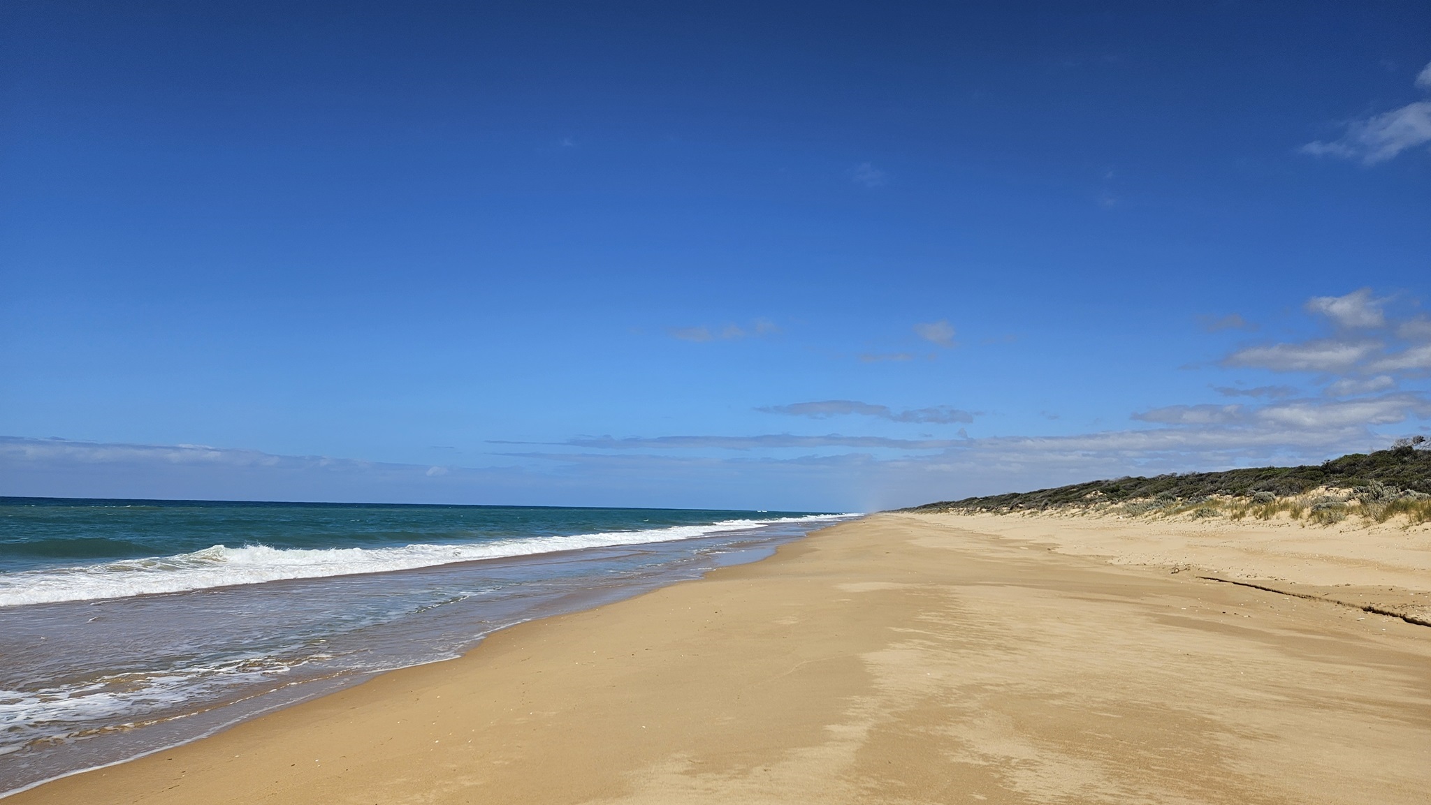 Wir brechen, wie meistens um 10h, von Paynesville in Richtung des Wilsons Promontory National Park auf. Wir machen einen kleinen Umweg und fahren den "Ninety Miles Beach" entlang, es ist der längste durchgehende Strand in Australien. In Foster machen wir dann Rast für unser Abendessen und fahren dann zum einzig freien Nachtquartier "Shallow Inlet Campground", ein einfacher Campingplatz mit Plumpsklo, aber direkt am Meer.